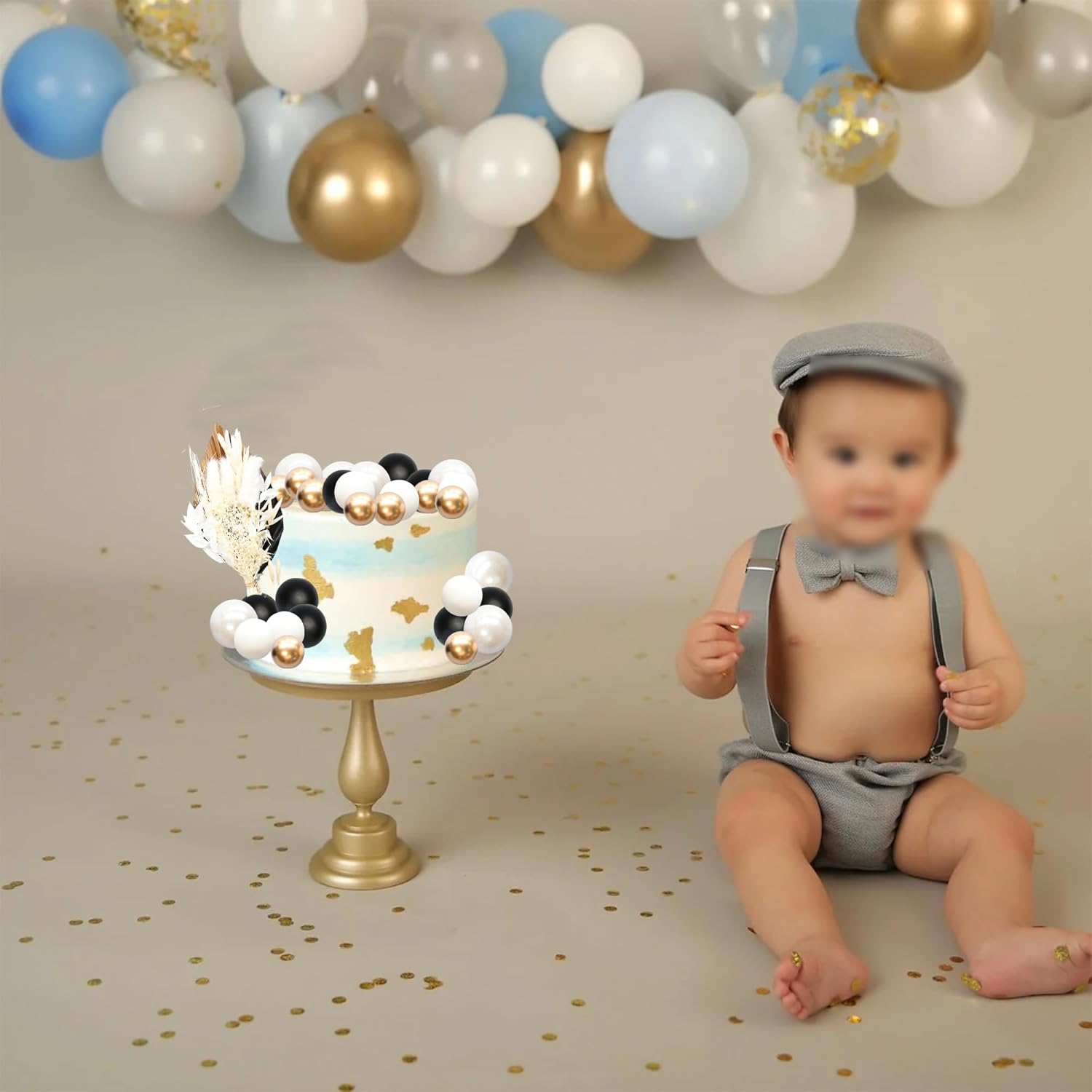 Gyufise 21 Pack Flower Boho Cake Topper Ball Cake Decorations Palm Leaves Plants Cake Decor for Girl Bohemian Princess Theme Wedding Baby Shower Birthday Party Supplies White Gold