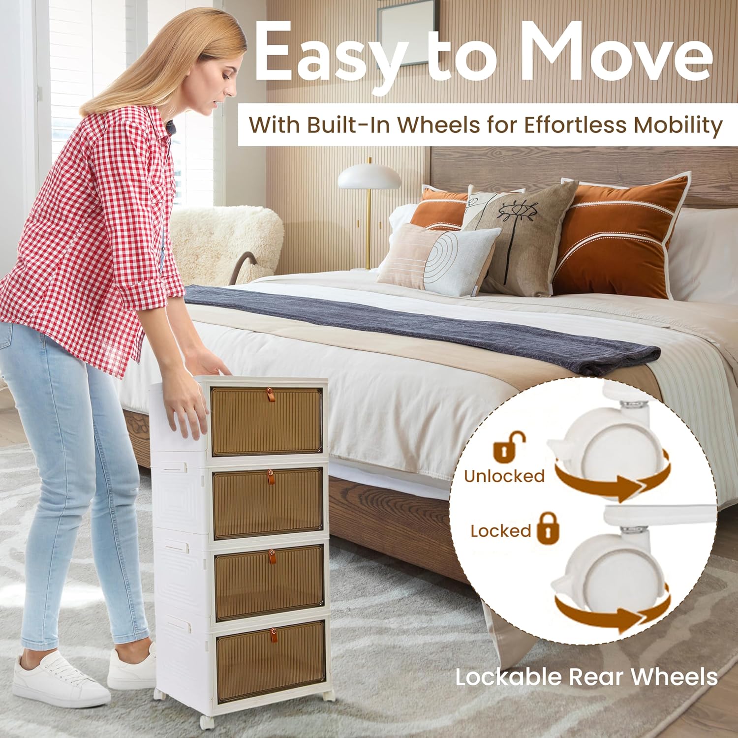 Quik Box Sport 4-Tier Stackable Storage Organizer - 24 Gallon Capacity Collapsible Bins with Magnetic Doors, Space-Saving Vertical Storage for Bedroom, Closet, Dorm Organization