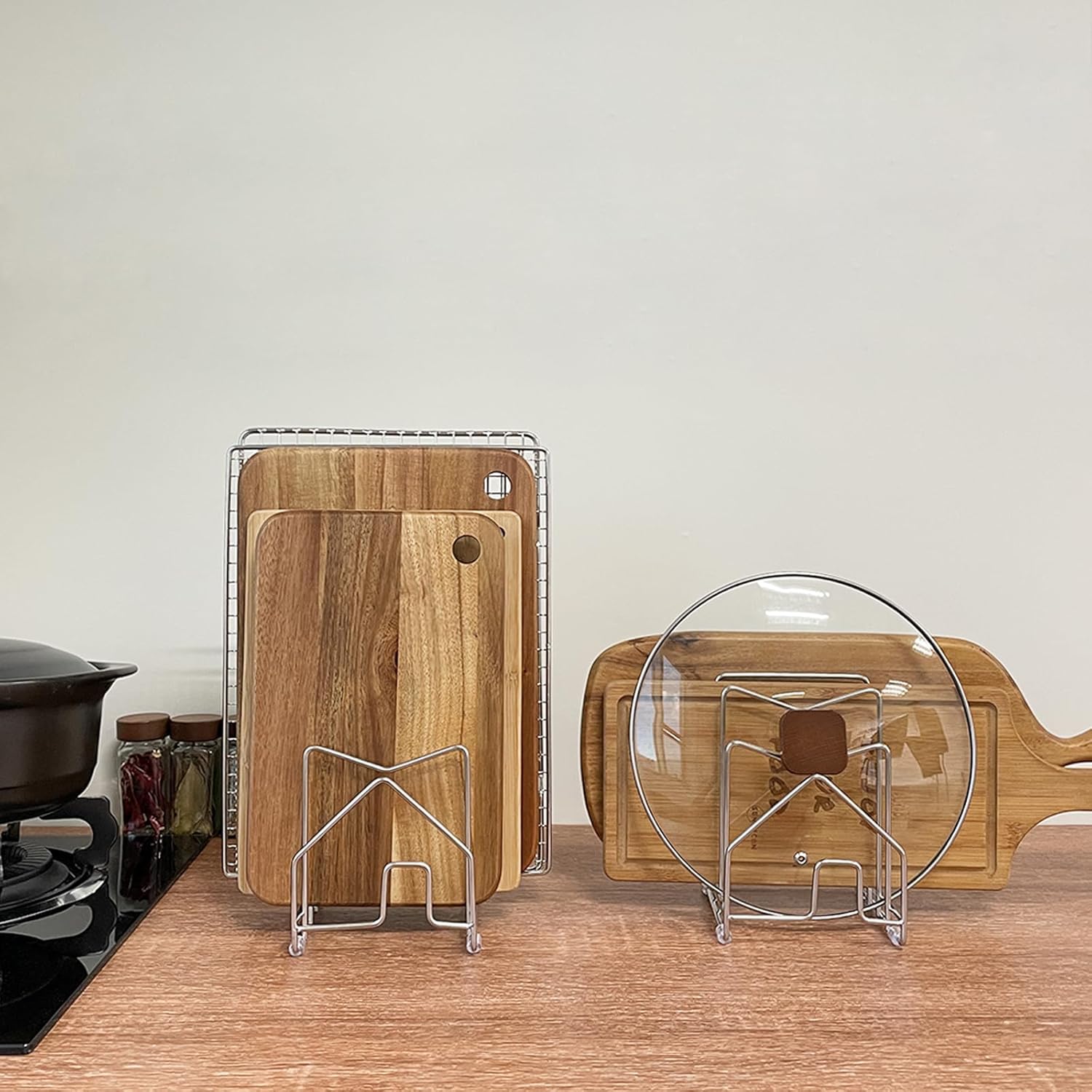 2 Pack Pot Lid Organizer Cutting Board Holder Inside Cabinet 304 Stainless Steel Pots and Pan Organizer Under Cabinet Pot Cover Cookie Sheet Bakeware Serving Tray Cooling Rack Stand Kitchen Countertop
