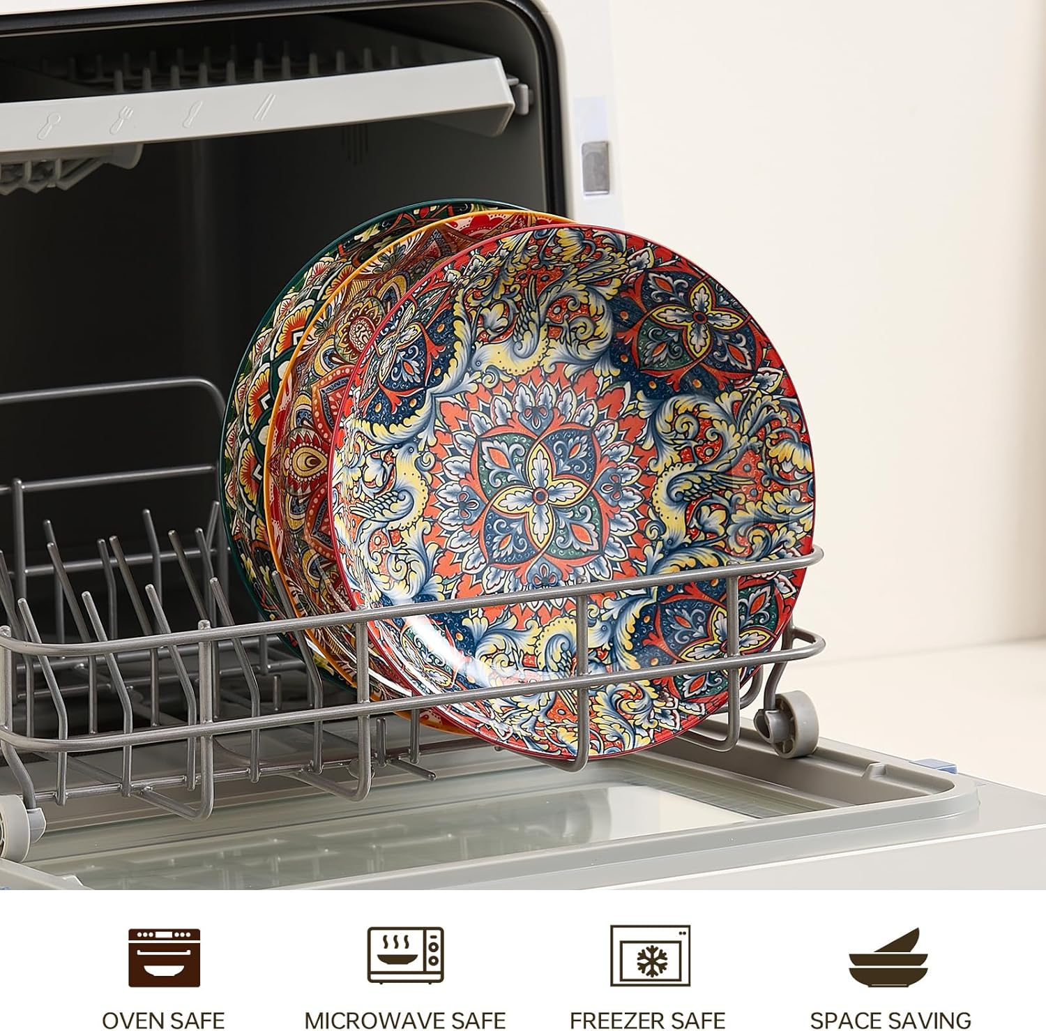 - Easy to clean and space-saving: These dinner plates have a smooth surface and are easy to clean. They can be easily washed by hand or in a dishwasher. The 6 bowls feature a stacking design, saving storage space and making your kitchen neater and more organized. The microwave oven is designed to be safe and more convenient to use.