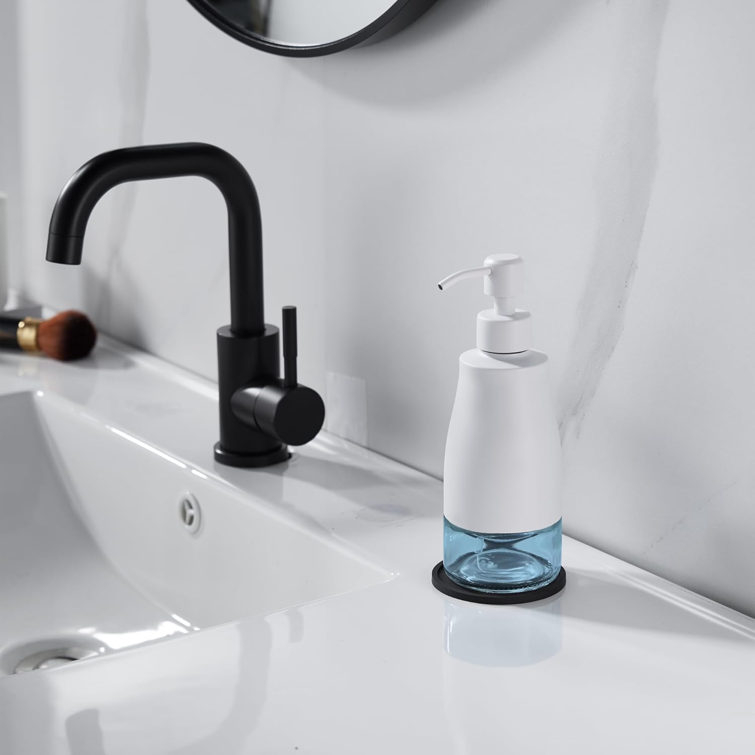 Gaussra White Soap Dispenser with Coaster and Stickers, Stainless Steel and Glass Bottle Hand Pump Dispenser, Refillable Liquid Hand Soap Dispenser for Bathroom & Kitchen (11OZ / 320ML)