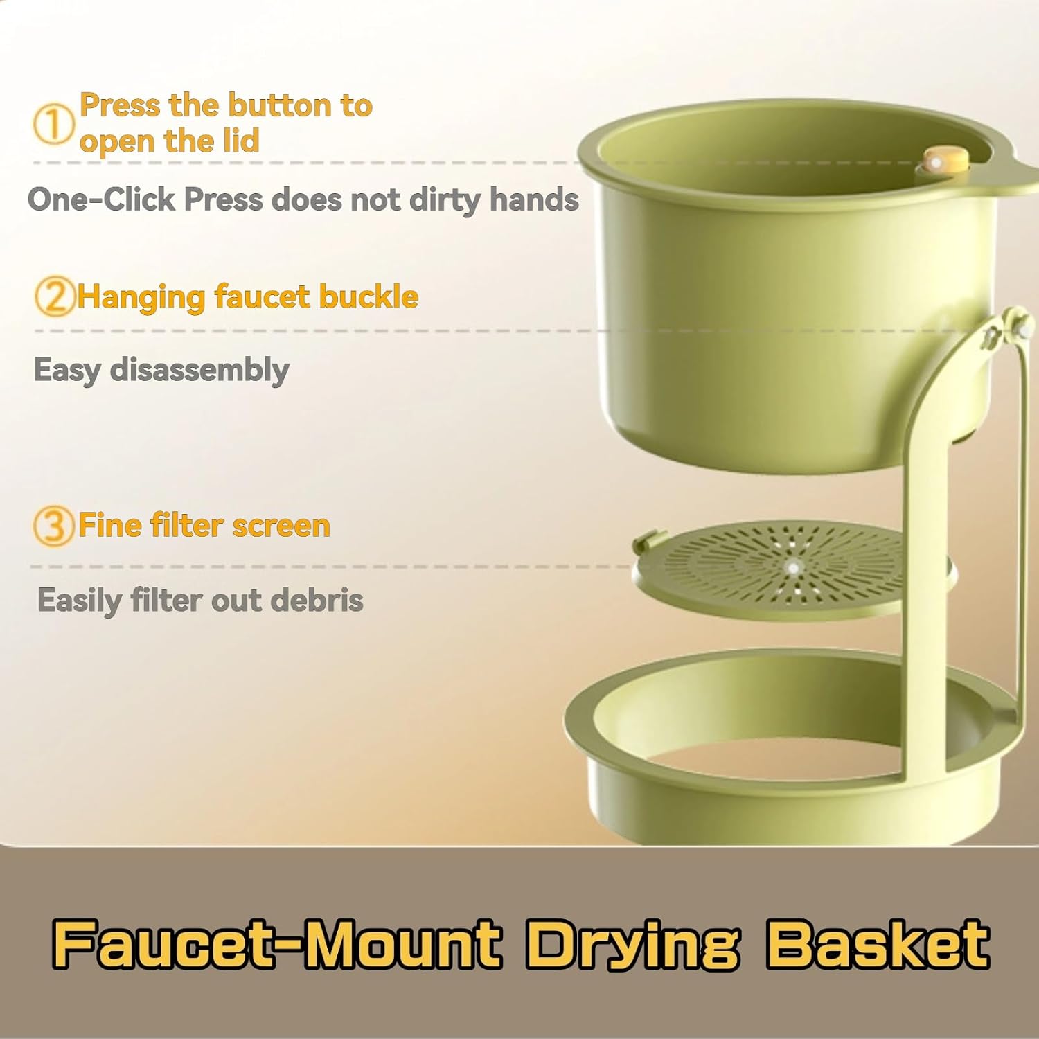 - ✦[Effortless Food Waste Disposal] - Press the bottom lid button to easily dump food scraps without touching mess—ideal for kitchen sink organization. The fine-mesh design drains water quickly while trapping debris to prevent clogged drains.