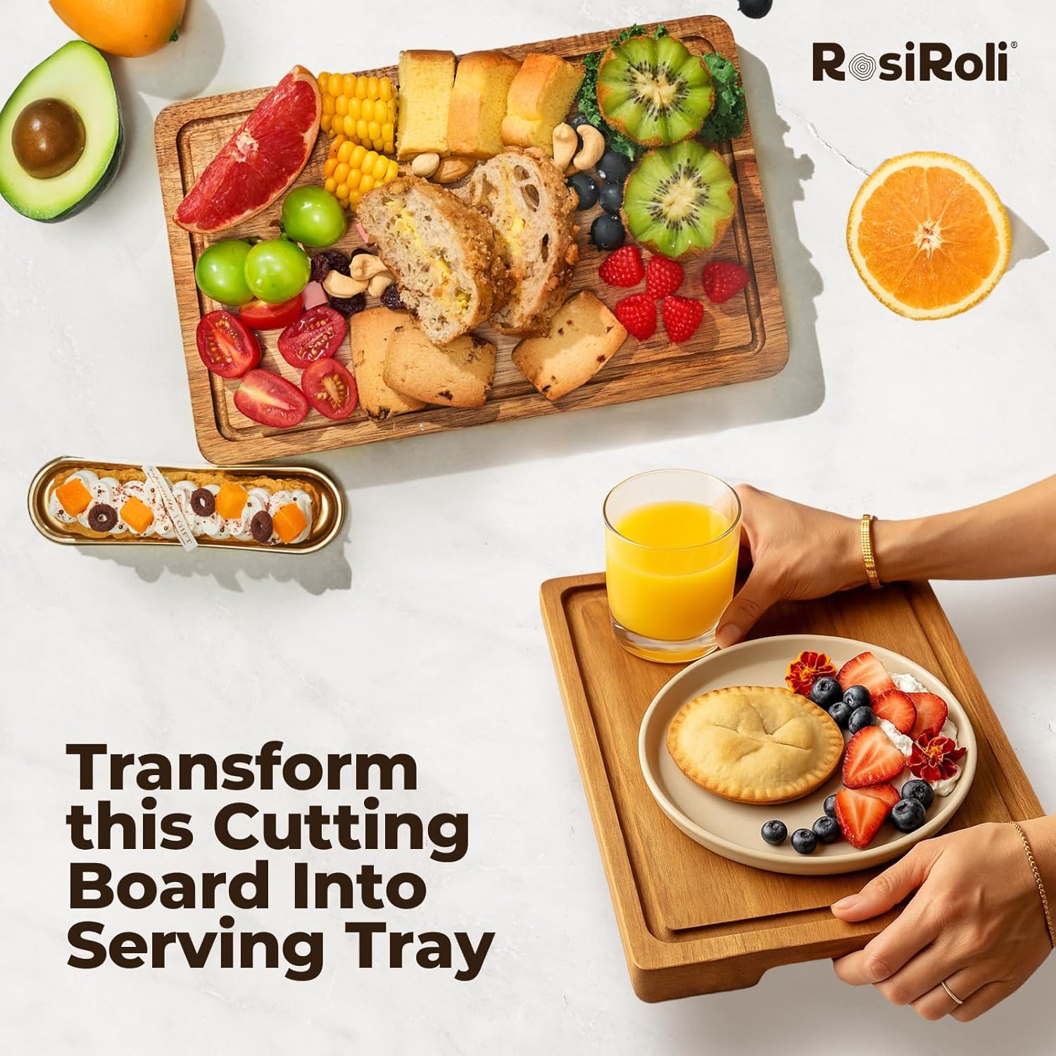 - Sized to Perfection - double-sided cutting board 11.5'' x 7'' with an excellent 0.8'' thickness, could be used as chopping, slicing, carving, butcher block or serving tray.