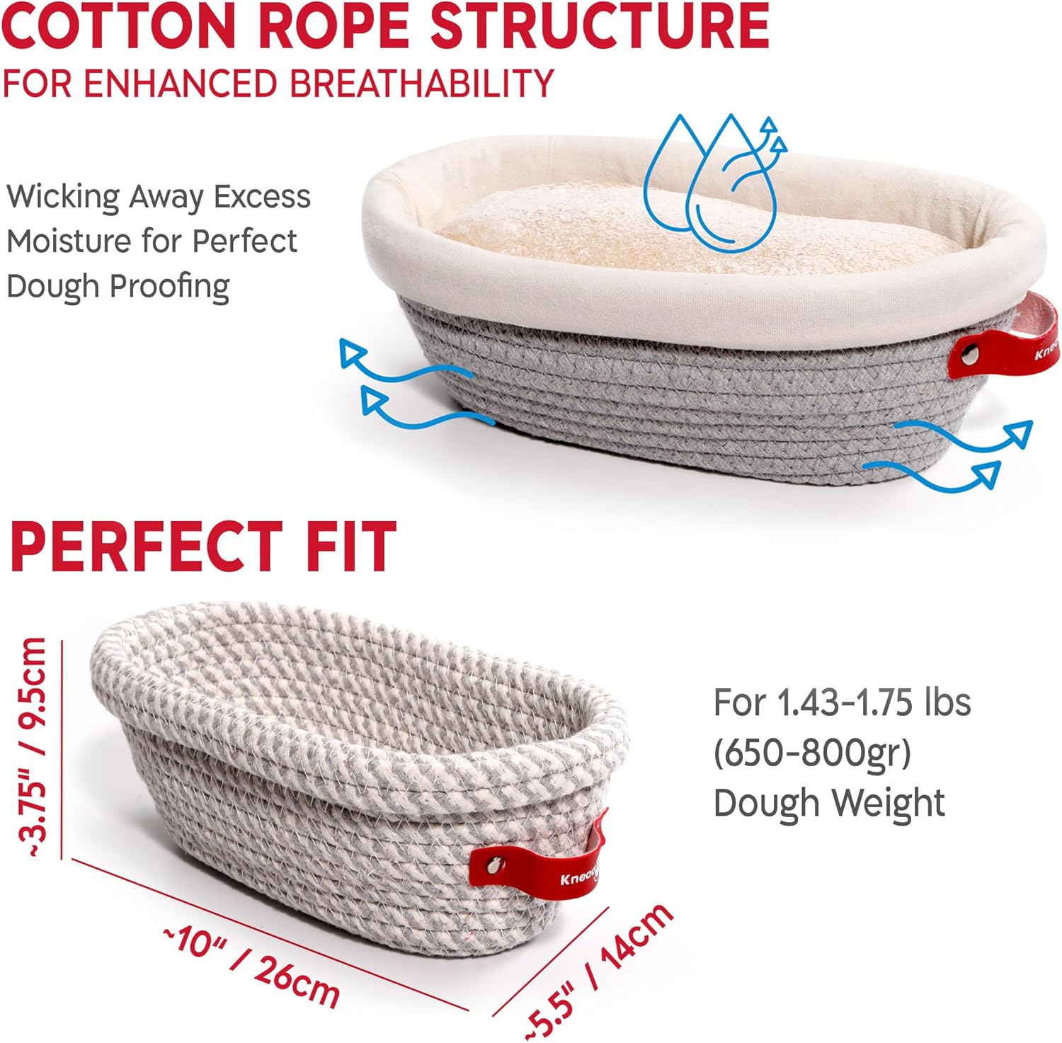 KneadAce Sourdough Starter Kit (PRO 34oz Jar, 2xOval baskets, Red Bread Lame)