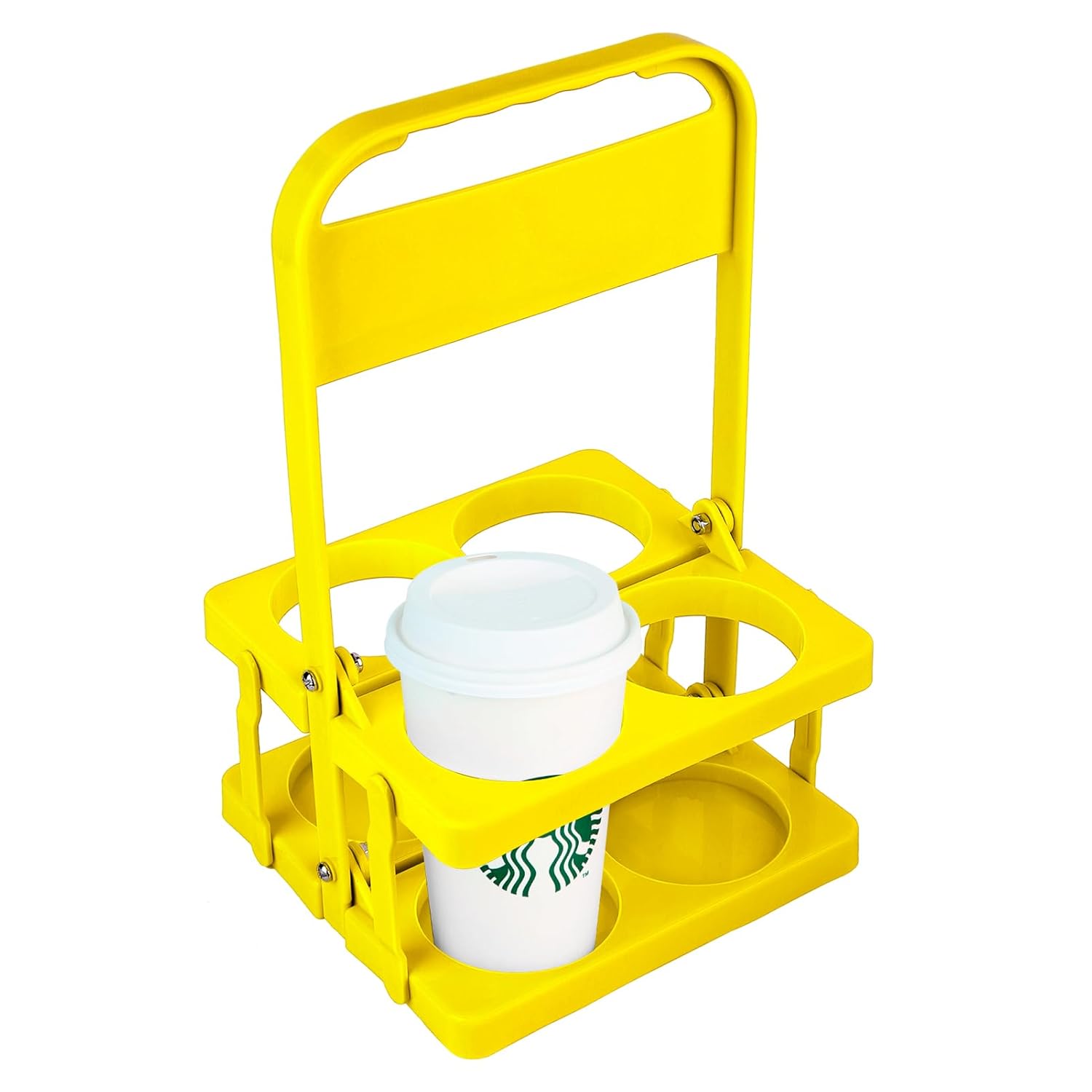Bodaon 4 Cup Drink Carrier with Handle, Plastic Cup Carriers for Drinks, Drink Holder for Car, GrubHub/Eats Doordash Accessories, Portable Foldable Reusable Mobile, Use for Food Delivery Bag, Yellow