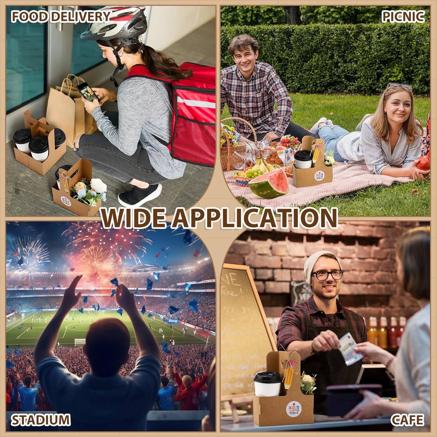 - Efficient Design: our coffee cup holders with handles adopt a foldable design, which makes assembly convenient and efficient, saving storage space, and can be applied to transport multiple beverages at one time; The waterproof function ensures that the contents will not accidentally spill; This beverage cup holder is ideal for takeout or take out drinks, and can safely transport drinks and food