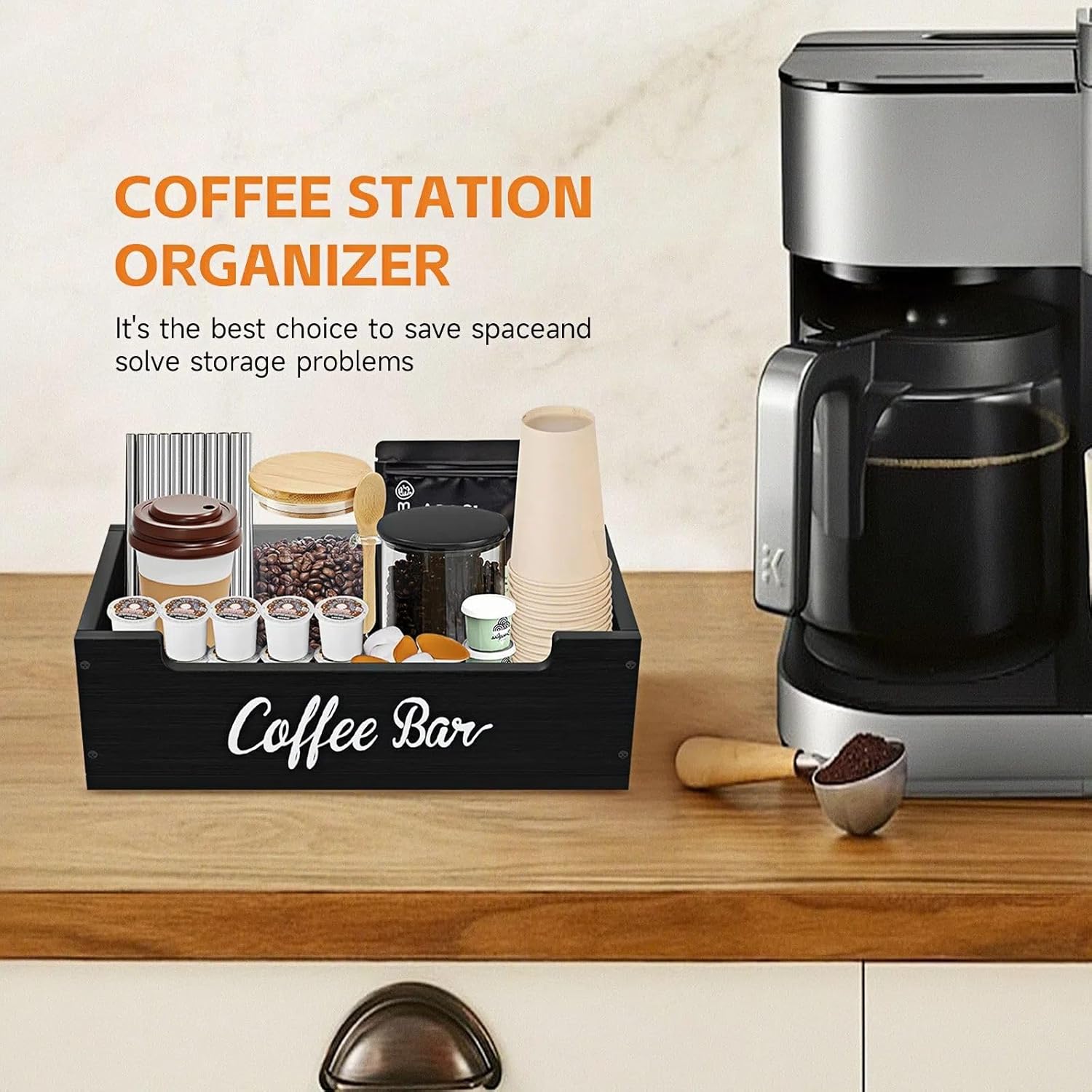 Coffee Pod Bar Station Wooden 13" X 7" X 4" Organizer Box for Countertop, Counter Top Tea Espresso Cup Wood Storage Box, Black