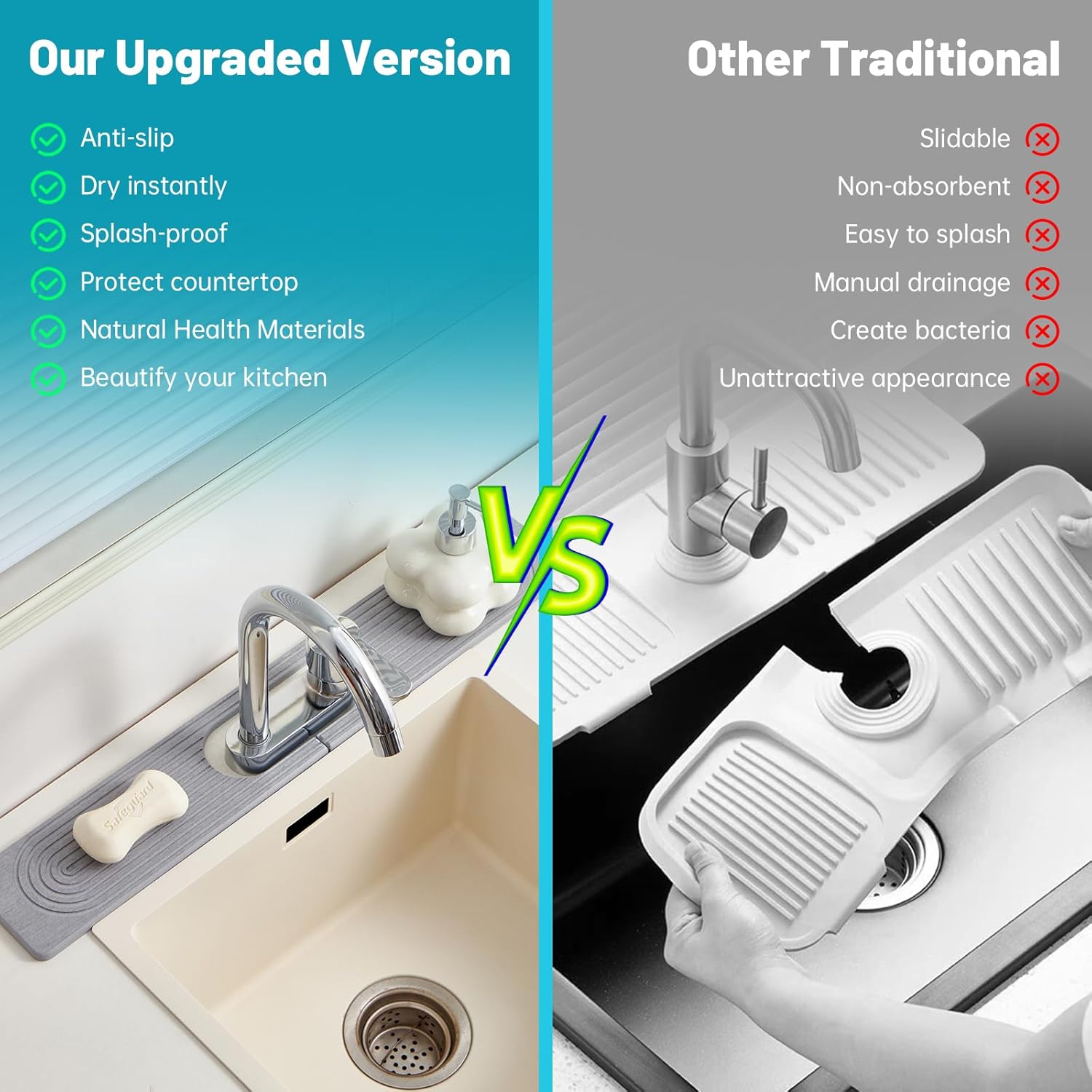 - Super Absorbent: This diatomaceous earth faucet mat absorbs water instantly, keeping your kitchen or bathroom countertop dry and clean. No more water stains or puddles around your sink.promoting a hygienic environment.
