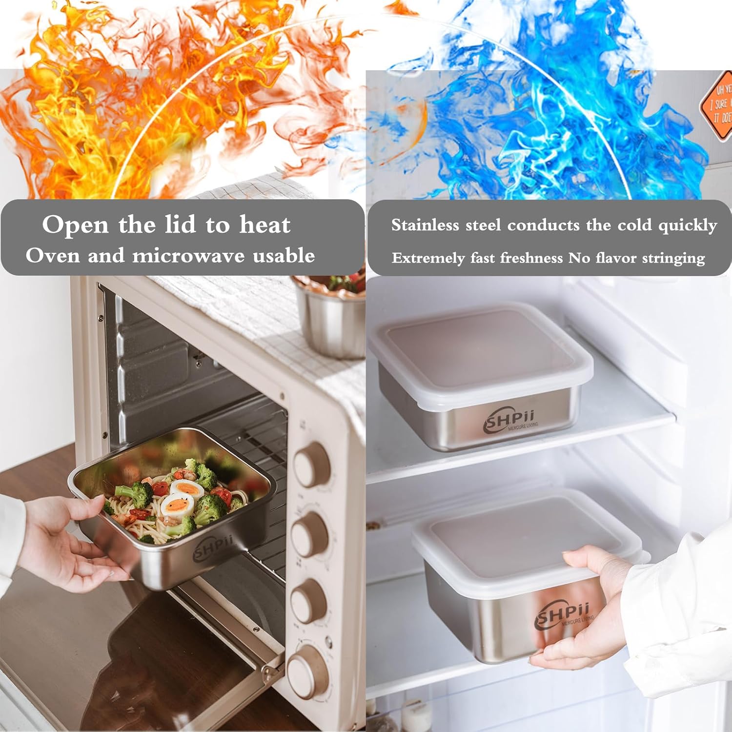 - ✓[Lid]: PE material lid, flexible and not easy to crack. Heat-resistant to 176°F (80°C), Cold-resistant to -4°F (-20°C) ,Please open the lid when microwave heating.