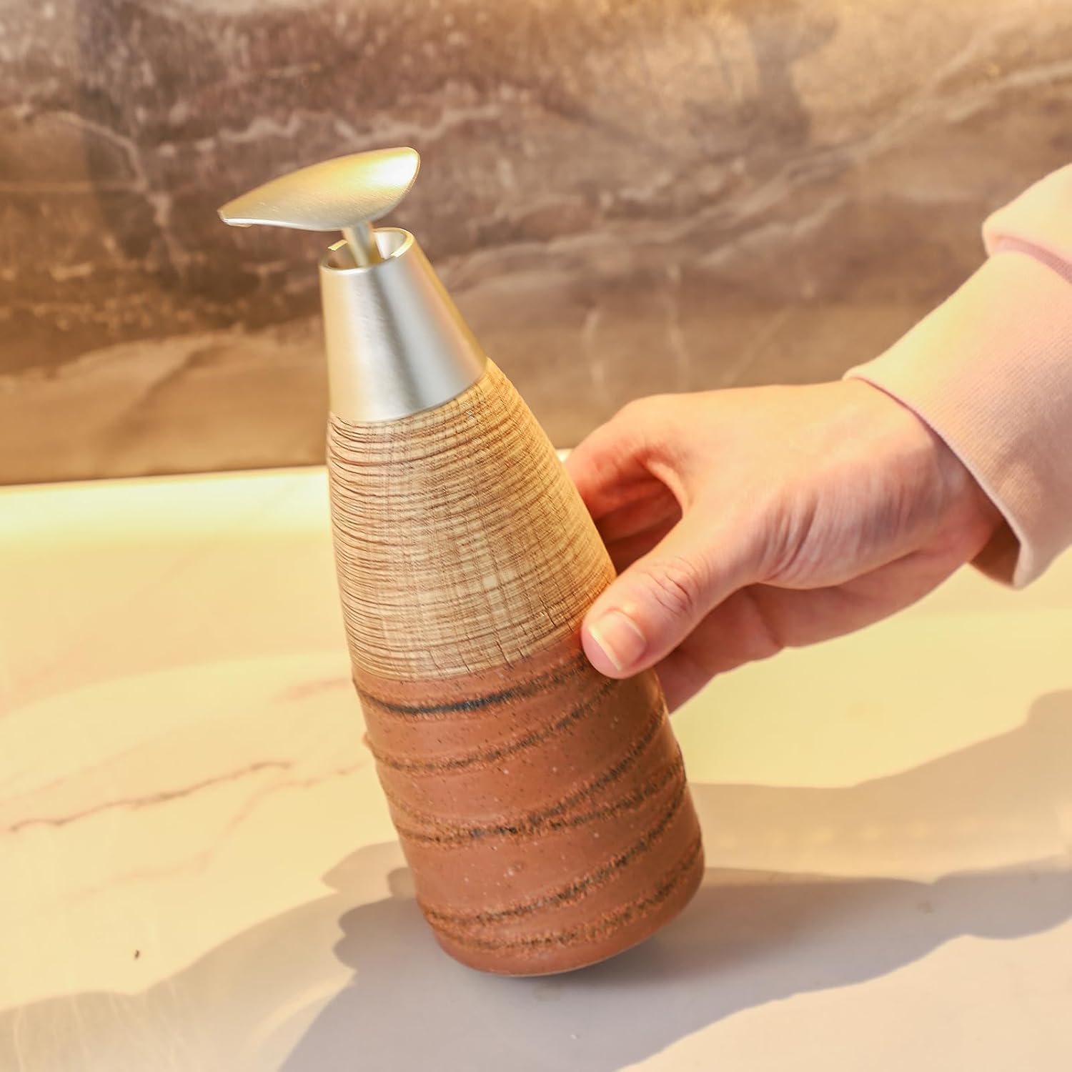 - 🎨 Unique Artistic Design Crafted with a premium glaze finish and subtle texture details, this ceramic soap dispenser adds an elegant accent to bathrooms, washrooms, vanity countertops, or powder rooms. Its versatile look complements everything from modern to minimalist interiors.