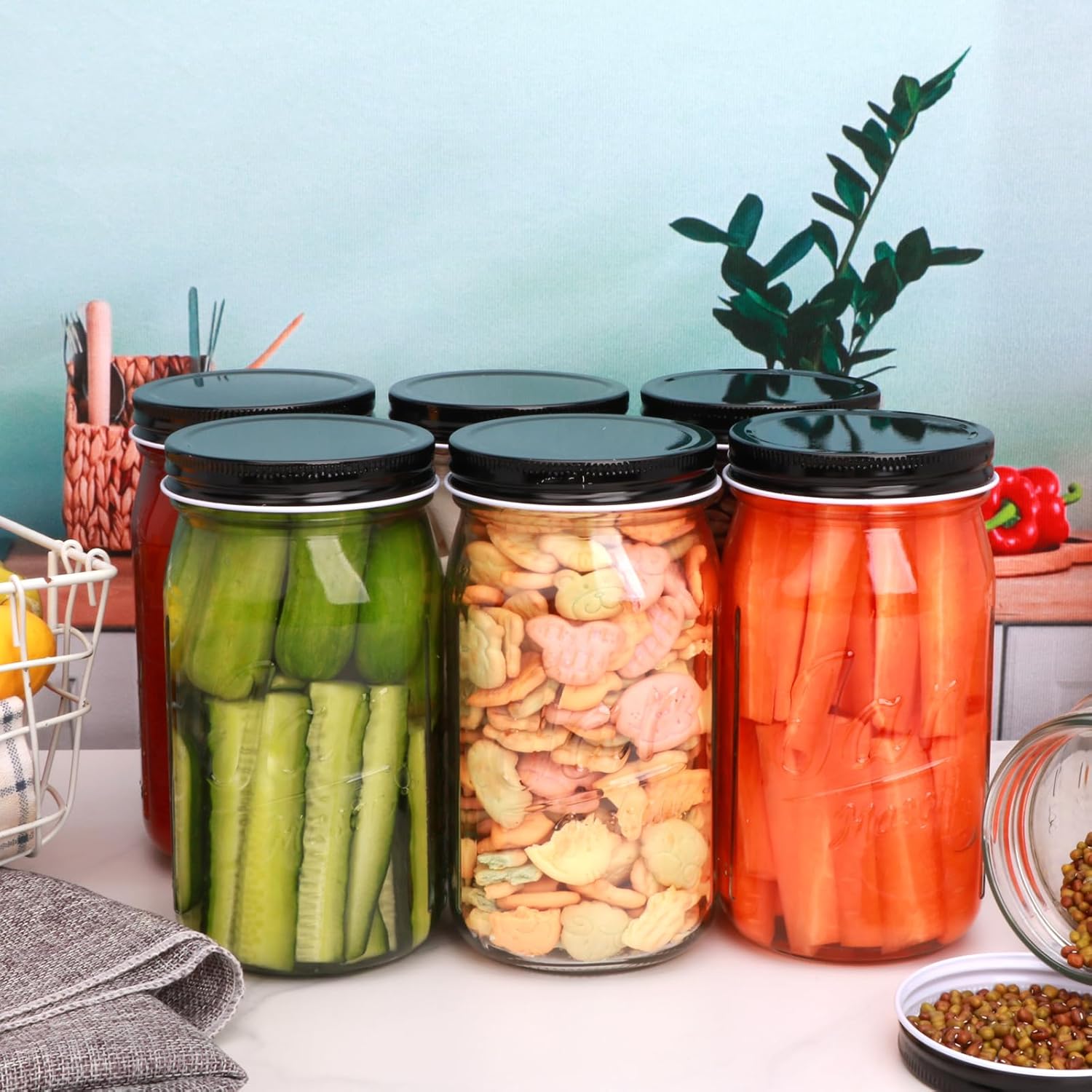 - Premium Food-Grade Glass - The mason jars 32 oz with lids are made of BPA free, toxic-free, lead free glass to ensure food grade safe and the high visibility allowing you to see whatβs inside jars with black lids.The jars are safe for refrigerator, dishwasher and microwave but the lids must be removed first. For freezing contents safely, do not exceed a 24-ounce fill level.