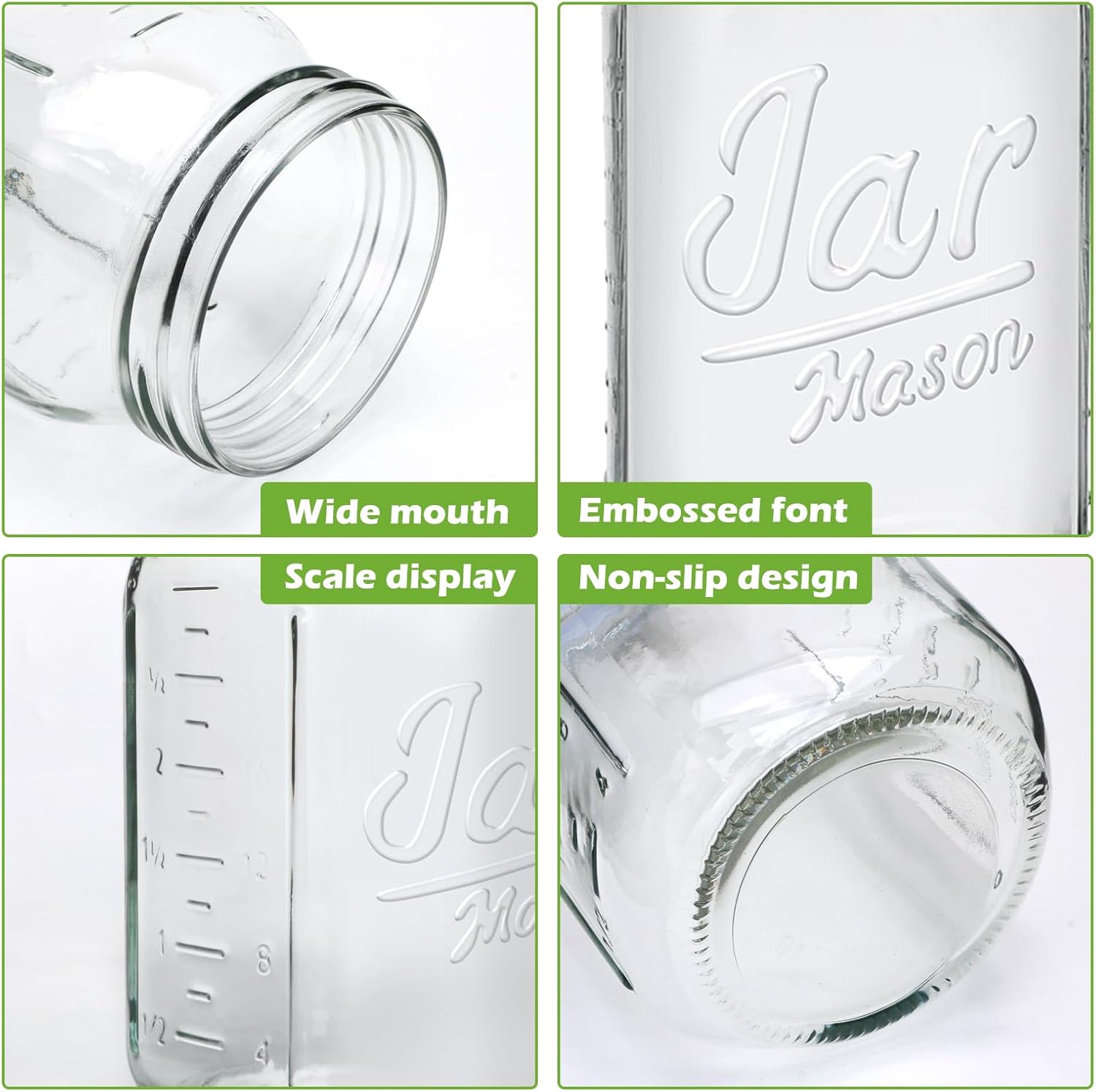 QAPPDA Wide Mouth Mason Jars 32 oz 12 Pack, Large Glass Jars Canning Jar with Lids for Pickling, Storage Food, Meal Prep, Jams, and Spices