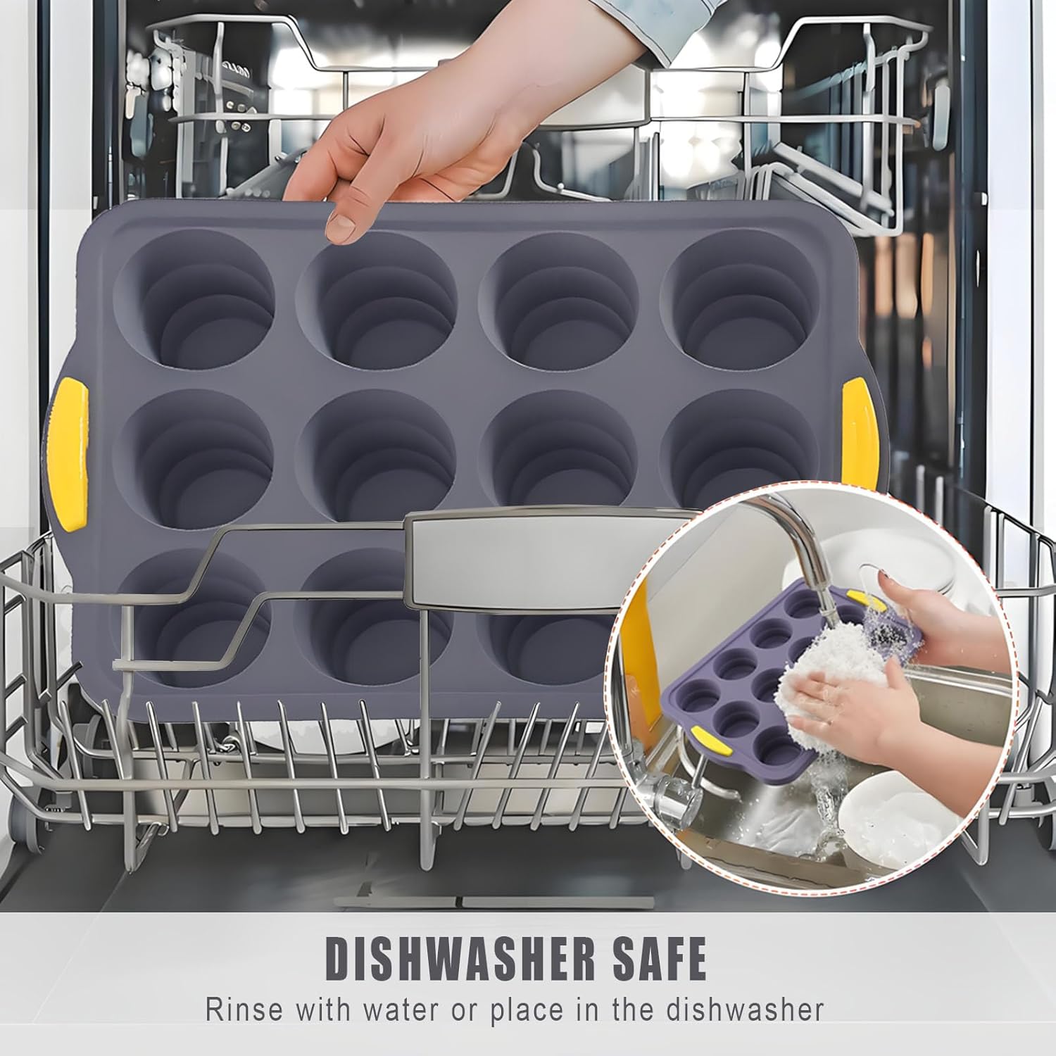 Silicone Muffin Pan with Metal Frame, Egg Bite Maker Silicone Molds for Baking, Cupcake Pans 12 Regular Size, Muffin Tins Easy to Pop Nonstick Non Toxic Bakeware for Oven (dark gray)