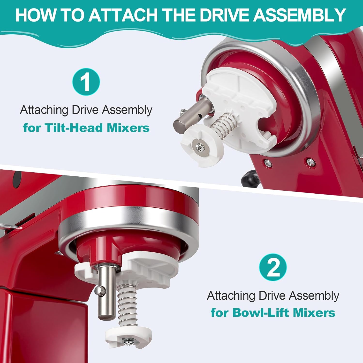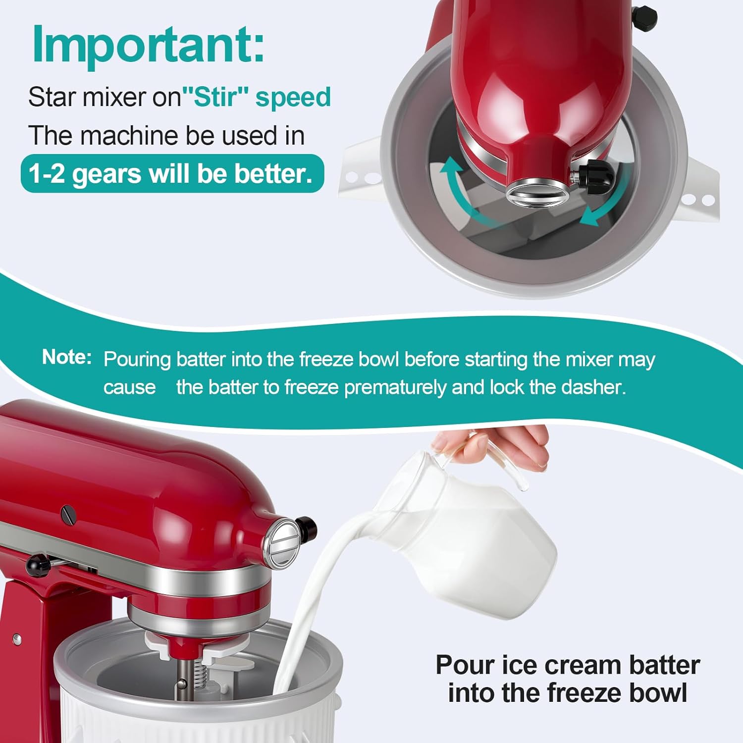 - VERSATILE DELIGHTS: Not just ice cream! The ice cream attachment fit kitchenaid mixer is perfect for making other frozen treats like slushies and icy desserts. Experiment with different flavors and frozen delights to surprise your loved ones with a variety of sweet options.