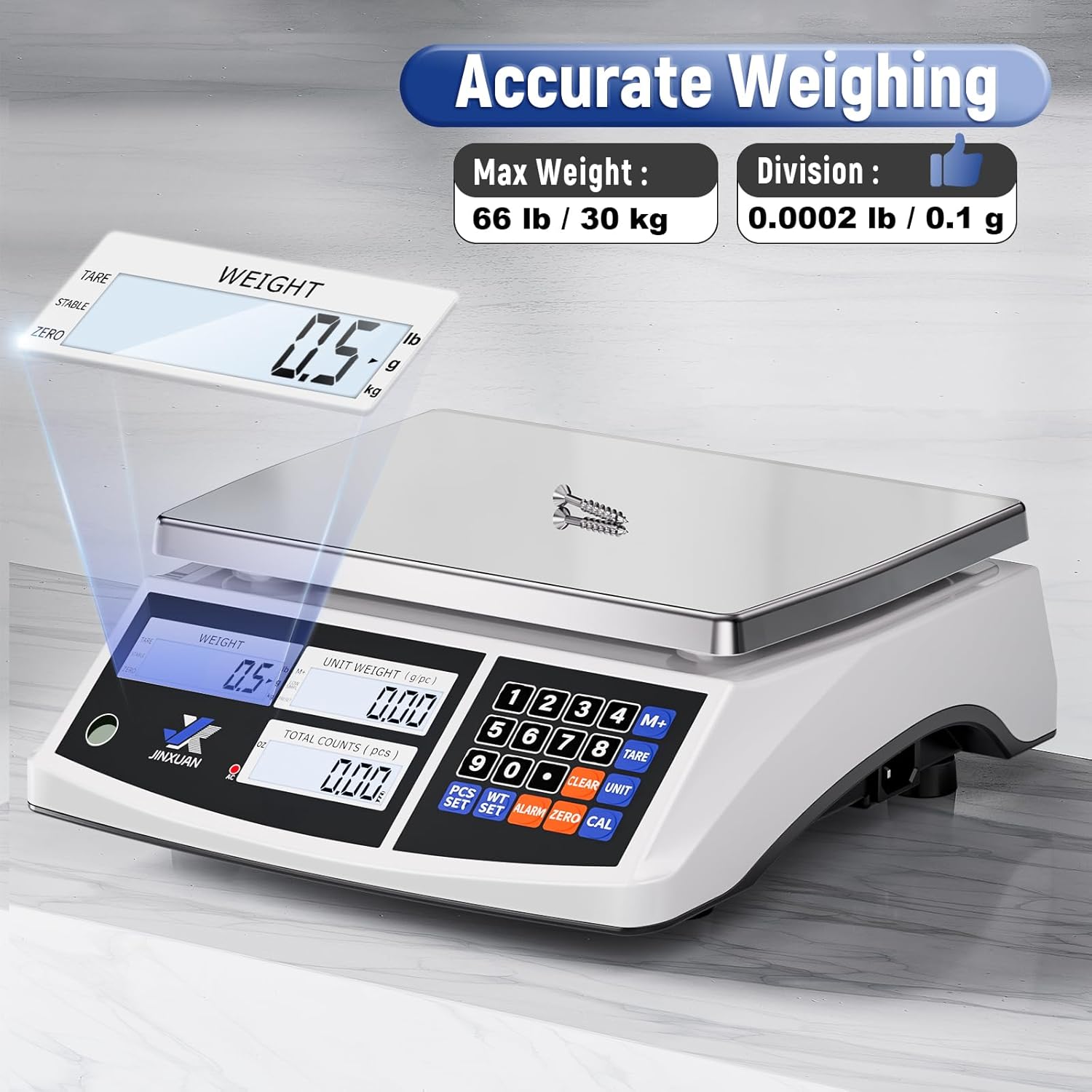 - 👍【High Precision】Our counting scale features a high-precision weighing sensor that detects small weight changes. It includes level bubble and adjustable leveling feet to ensure stable and reliable data. Additionally, the counting scale offers functions such as counting, weighing, taring, and an overweight alarm to meet various needs
