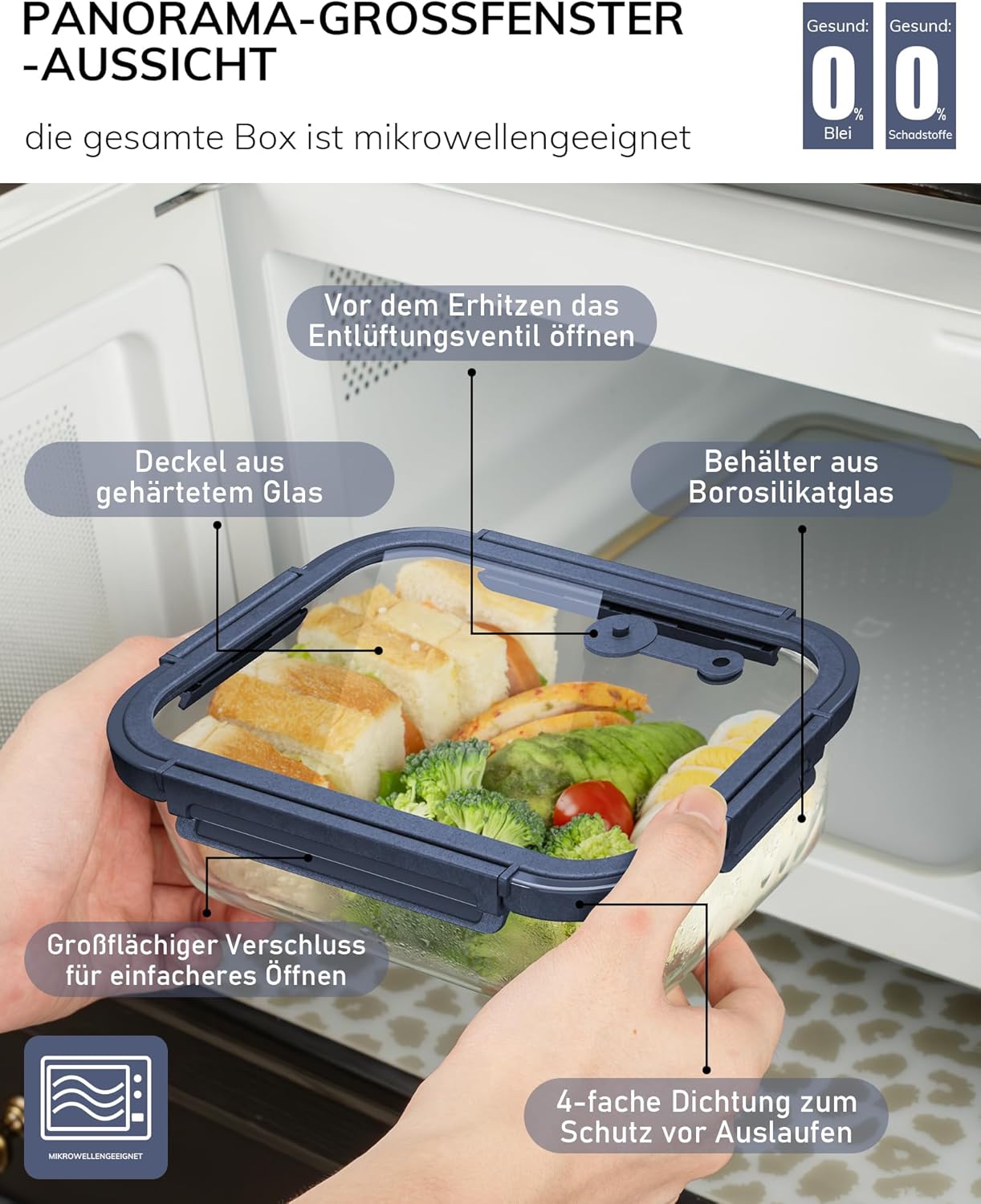 - 【Snap-On Tempered Glass Lids】 The durable tempered glass lids ensure even heating, prevent odor transfer, and are microwave-safe.