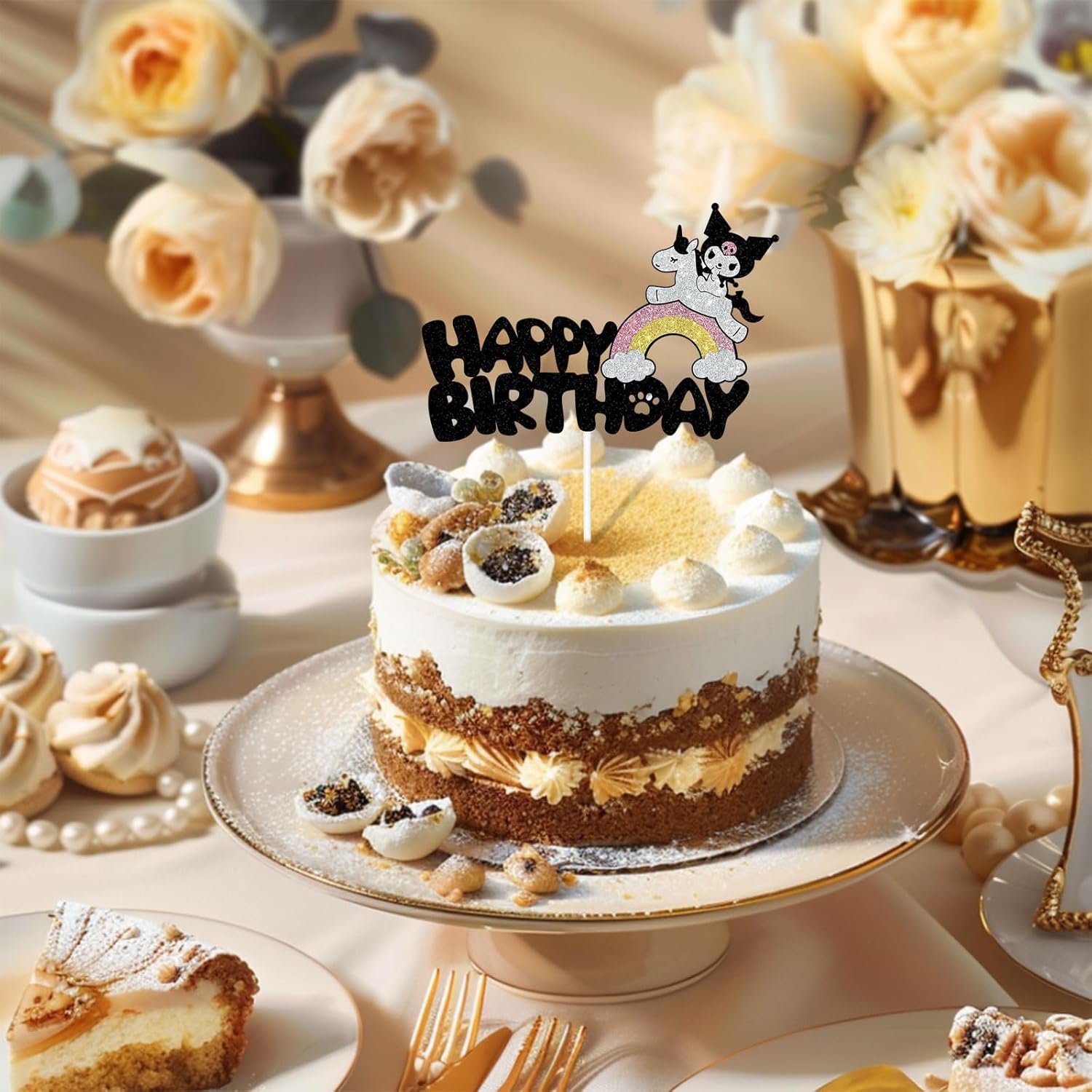 Cute Cake Decorations, Cake Topper, Cartoon Birthday Party Decorations (Black)
