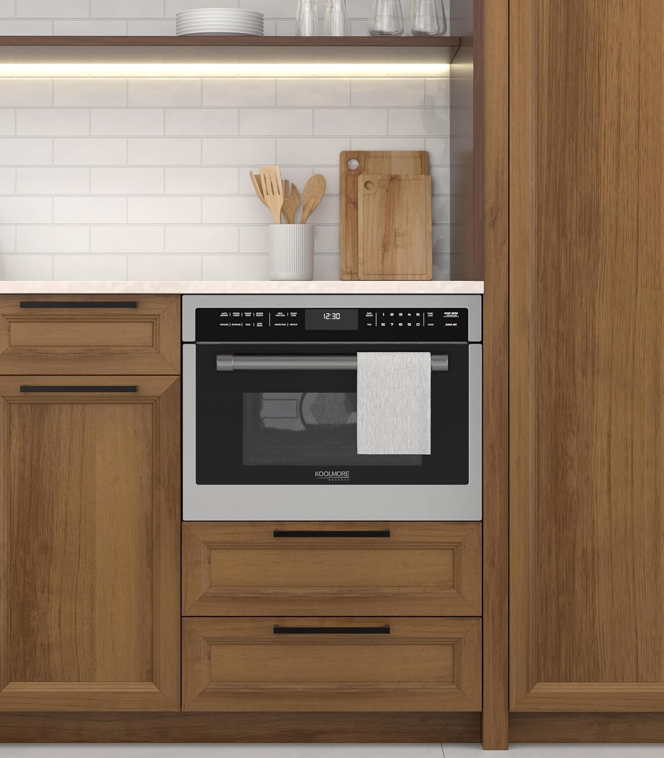 KoolMore Reserve 24 in. 1.6 cu. ft. Built-in Convection Microwave Oven with Air Fryer, 10 Power Levels, Sensor Cooking, Bake, Roast, Broil, Defrost, 1750 Watts, UL Certified in Black Stainless-Steel