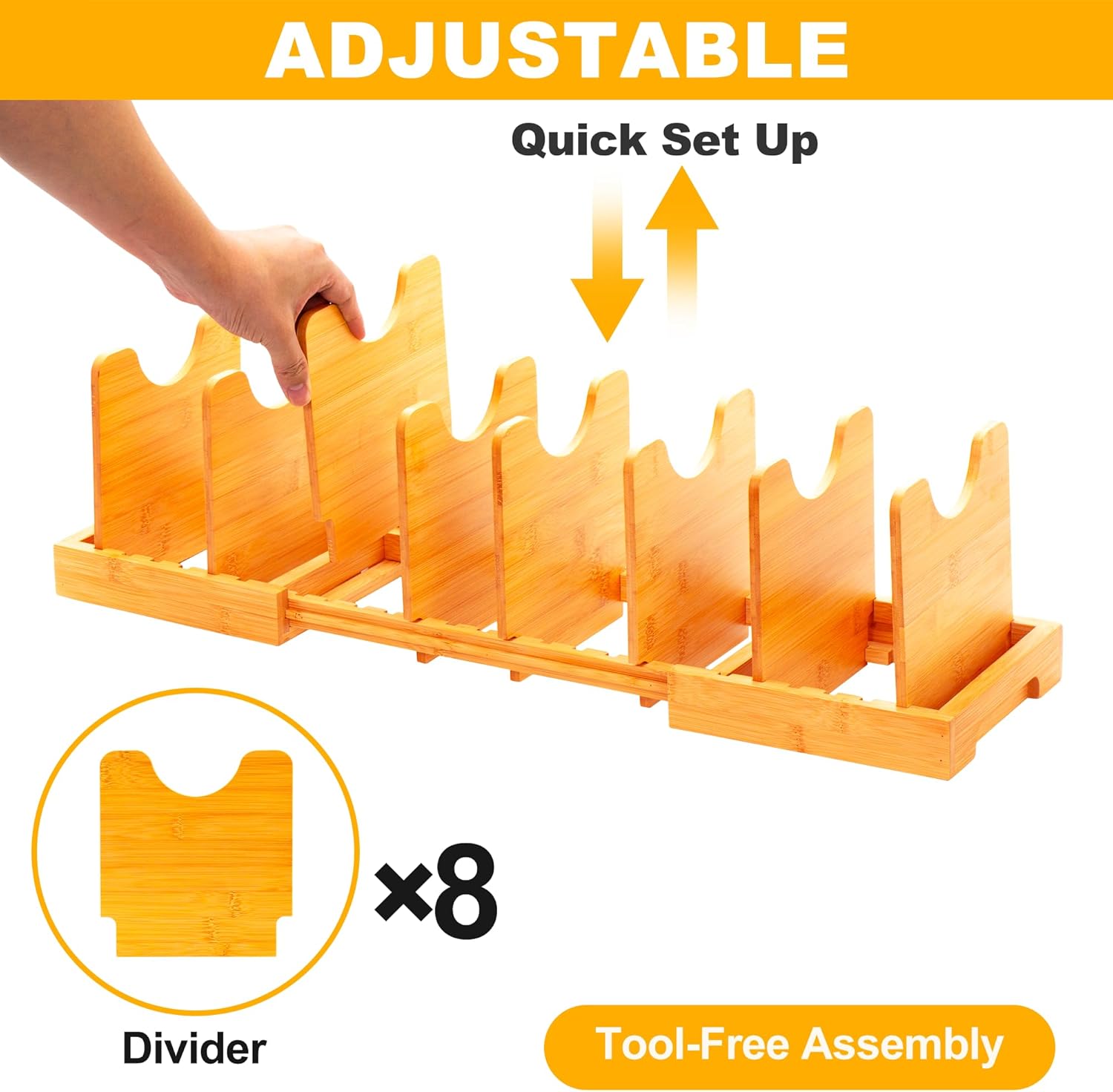 MinBoo Bamboo Expandable Pot Lid Organizer Pot Lid Holder, Pot and Pan Organizer Drawer Organizer for Pot Lids, Adjustable Dividers for Kitchen Cabinet Organizers and Storage,Small
