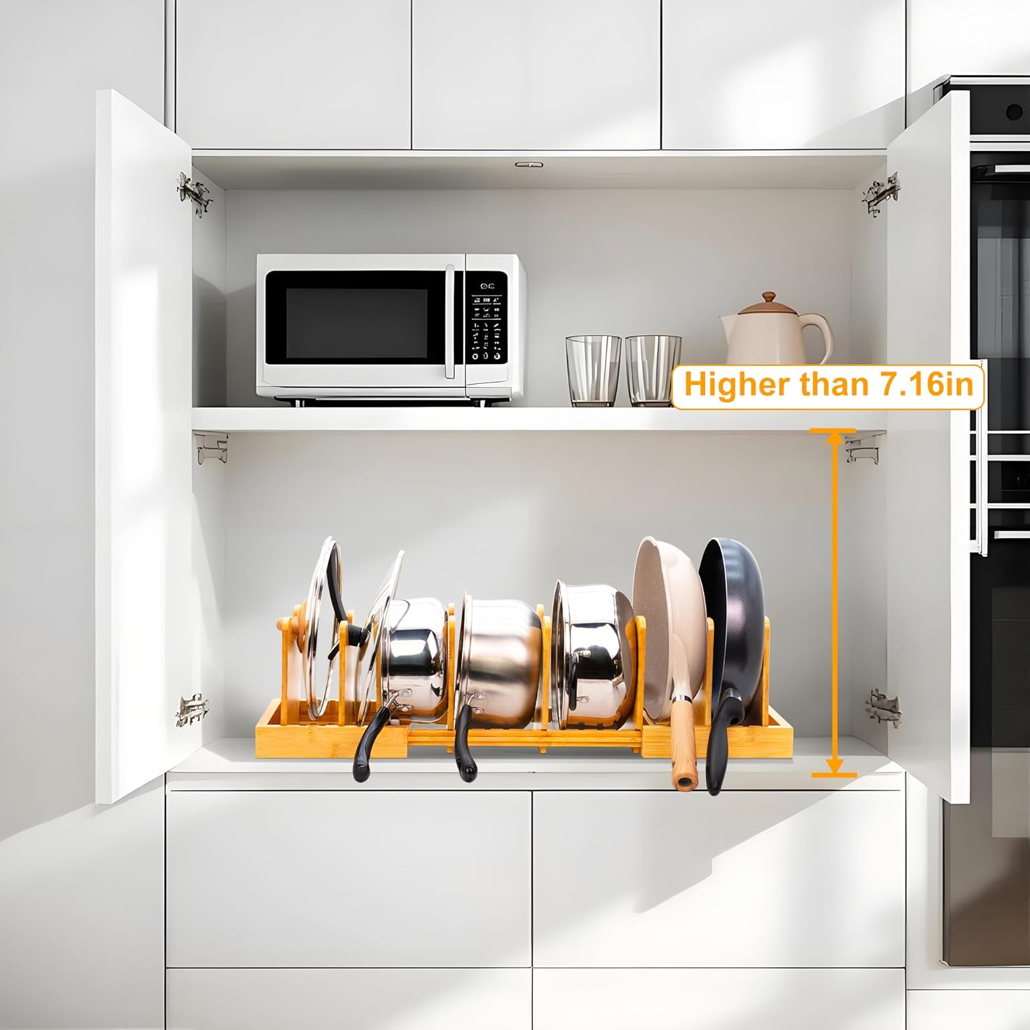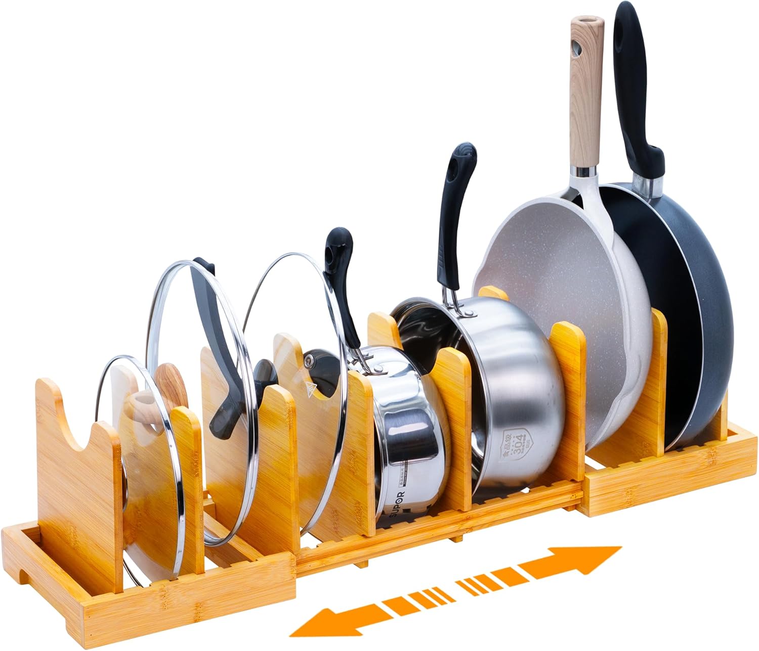 - Durable and Safe Material: It is made of natural bamboo products. The stand is better upgraded, more durable and stable to hold heavier cookware. Natural bamboo products can better match the cookware and style of the kitchen,The smooth surface can protect your kitchen items from being scratched