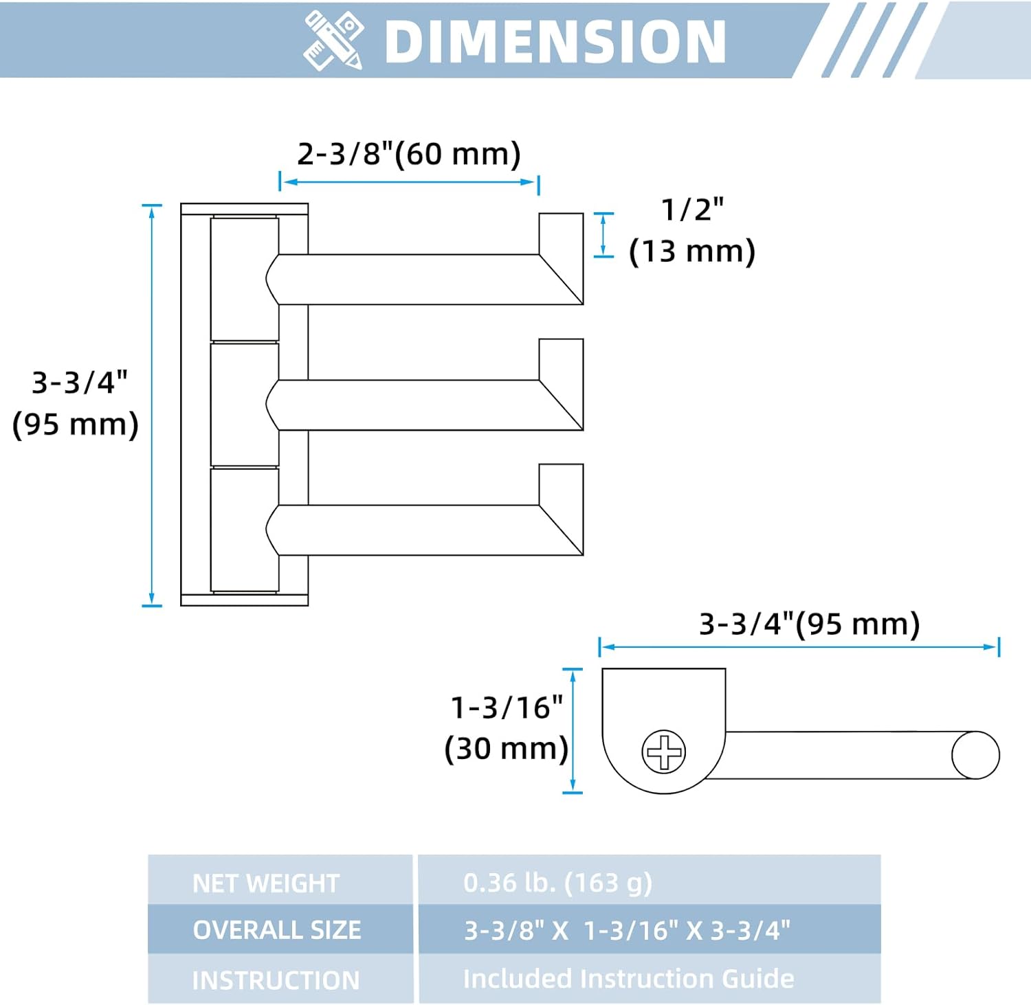 - EXTRA STORAGE SPACE: 2-3/8" (60mm) hanging length provides ample space to hold 3 items at once, such as towels, robes and kitchen tools, keeping everything organized and within reach