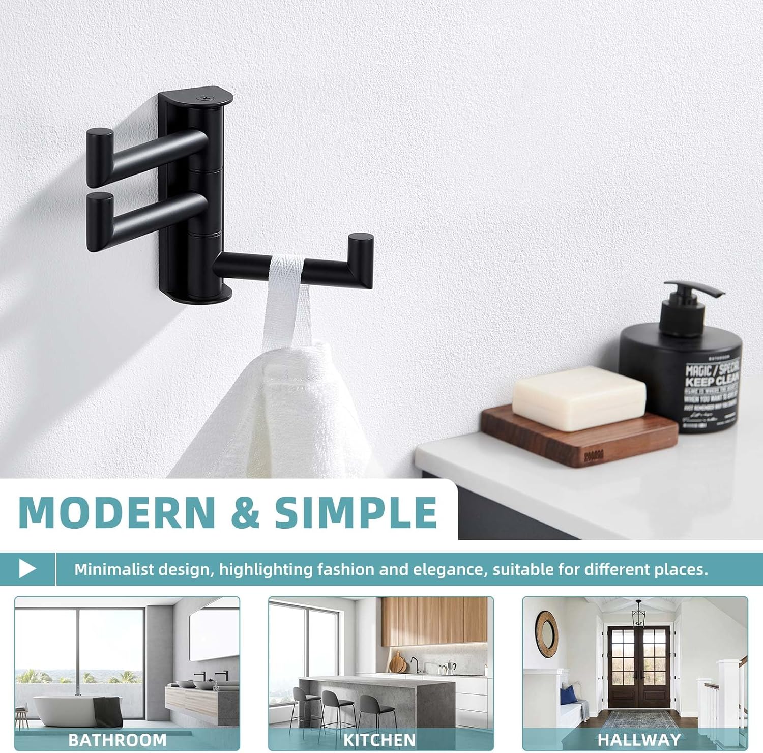 Suyar Swivel Towel Hook 3 Arms, SUS 304 Stainless Steel Coat Robe Holder, Foldable Wall Hook, Matte Black