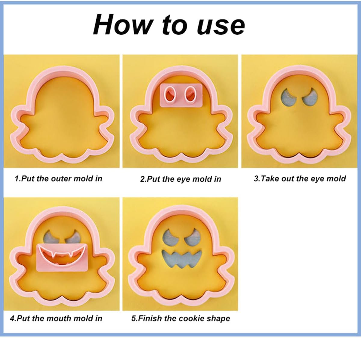 - Ghosts Cookie Cutters Easy to Use : Pumpkin cookie cutters great for both baking learners and pros! Simply cut the outline with the outer frame, then press the inner stamps no complex steps. These halloween cookie cutters make creating cute sugar cookies a breeze, making them perfect halloween baking supplies for everyone to enjoy