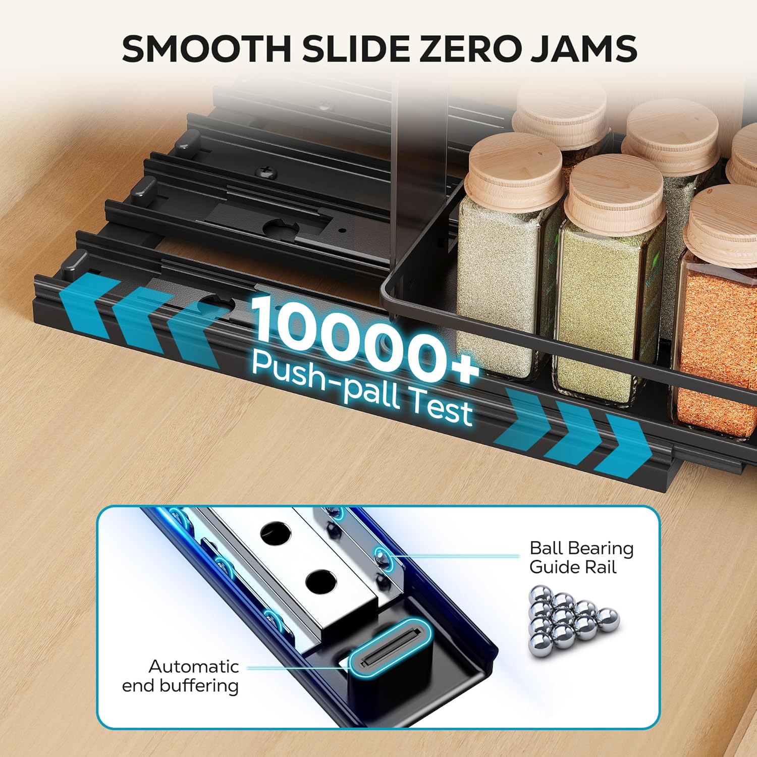 - BALL BRARINGS GUIDE RAIL--Smooth pull-out, automatic buffering at the end