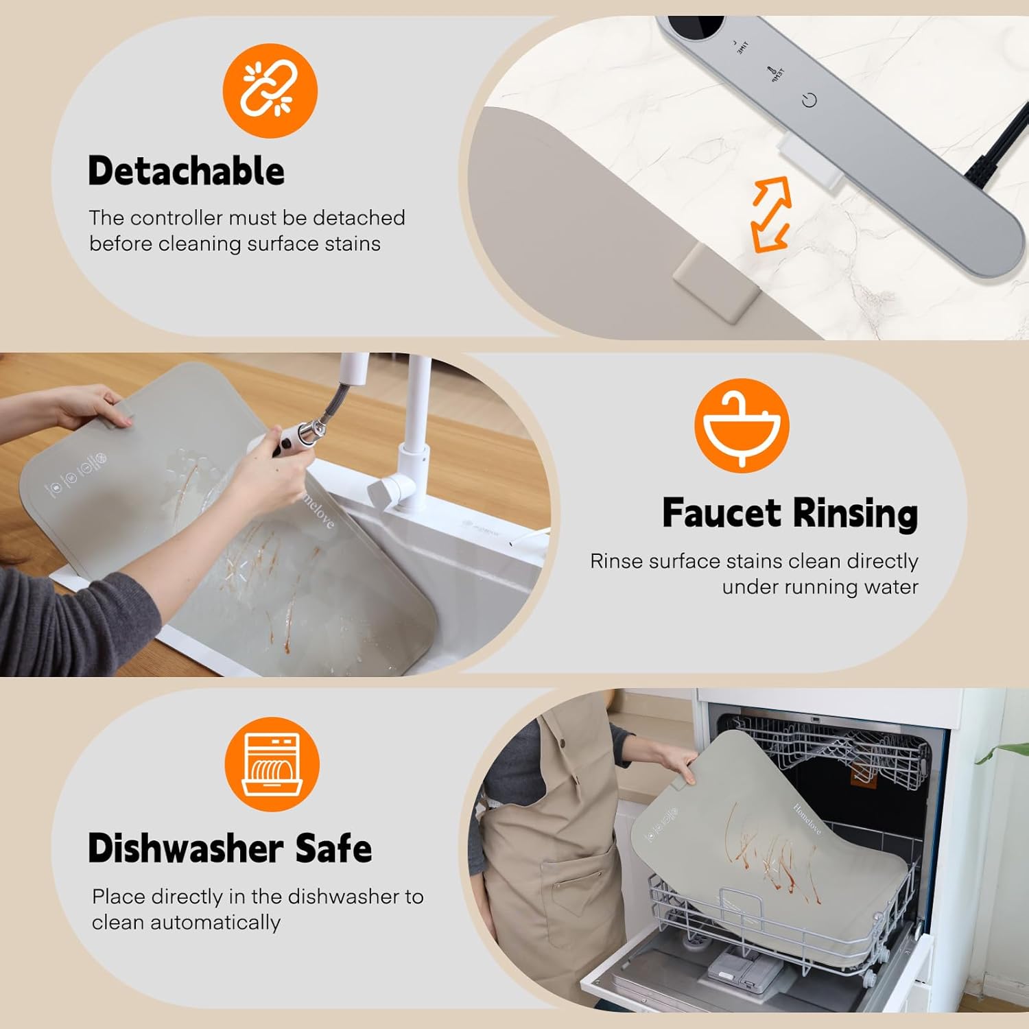 - Washable and Dishwasher-friendly: The control board and heating board of our food warming mat are detachable. Simply remove the control board, and the heating board is waterproof and washable, you can put it in the dishwasher for cleaning, spend more time enjoying your meals and less time cleaning up.