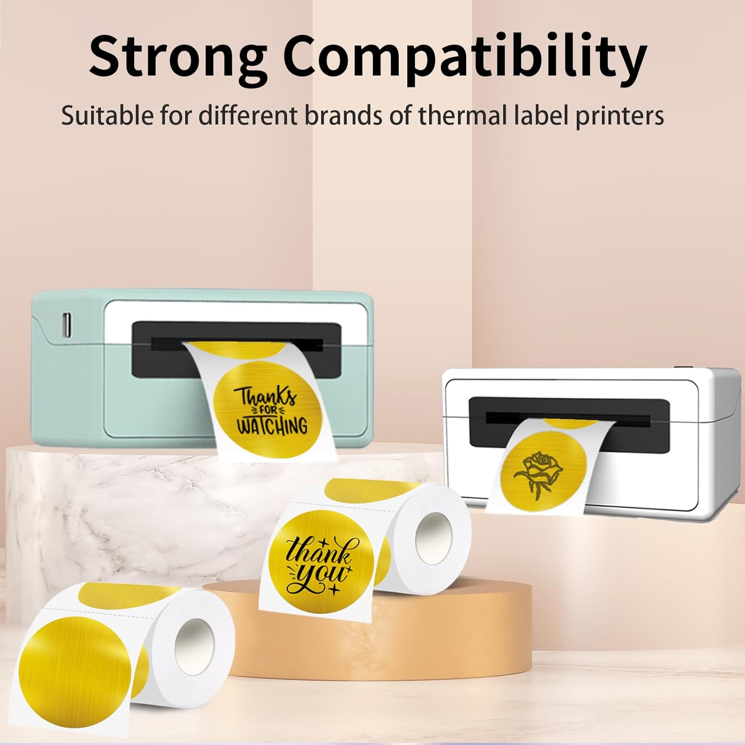 3''Holographic Thermal Label,Gold Round Self-Adhesive Direct Thermal Label,Thermal Stickers for DIY Logo Design,Name Tag(200/Roll