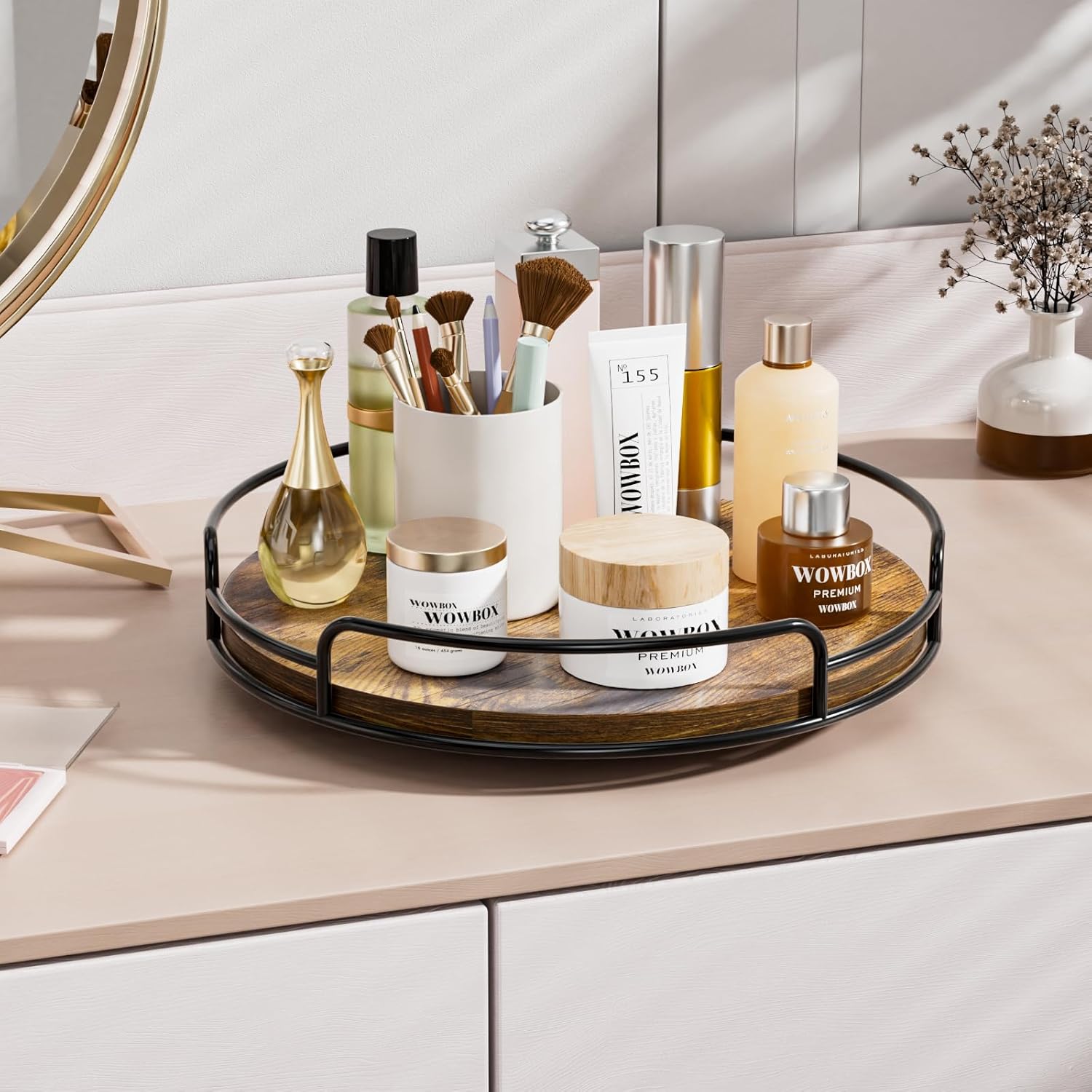 WOWBOX 12" Lazy Susan Organizer for Table Top Rotating Spice Rack Organizations Wood Lazy Susan Turntable Organizer for Cabinet Kitchen Pantry Countertop Bathroom Vanity