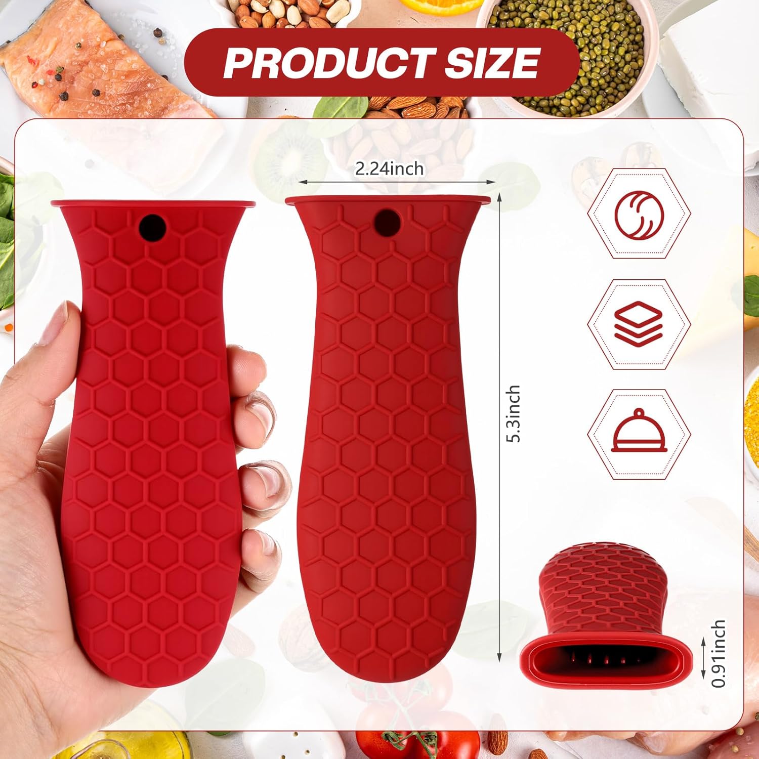 - Thoughtful Design with Anti-slip Texture: featuring a specially designed anti-slip texture and internal silicone ribbing, these cast iron handle sleeves effectively prevent slips and drops while handling hot cookware; This thoughtful design not only enhances safety but also allows for a confident grip, ensuring that you can maneuver pots and pans without fear of burns or accidents in the kitchen