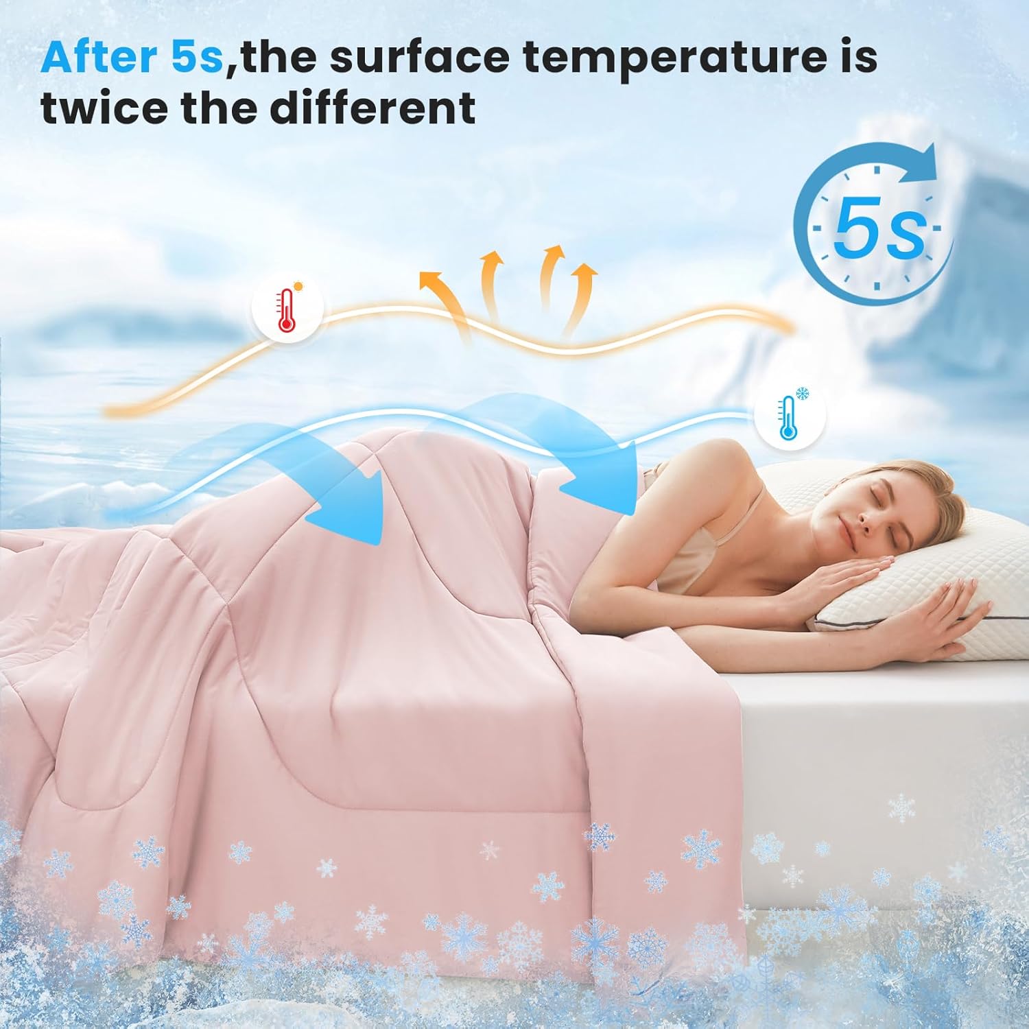 HYLEORY Cooling Comforter Twin Size - Summer Cooling Blanket for Hot Sleepers/Night Sweats, Double-Sided Cold Touch Silky Ice Comforters, Breathable Lightweight Beddings, Cool Pink, 68"x90"