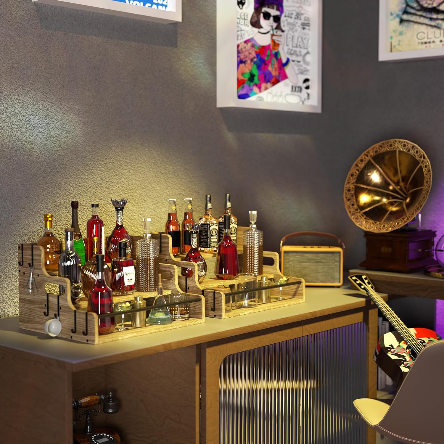 - Durable Wood Frame with Rustic Charm Crafted from premium wood, this liquor shelf brings vintage appeal and reliable support, Perfect for displaying spirits in a bar liquor shelf, whiskey bar, or alcohol cabinet for home