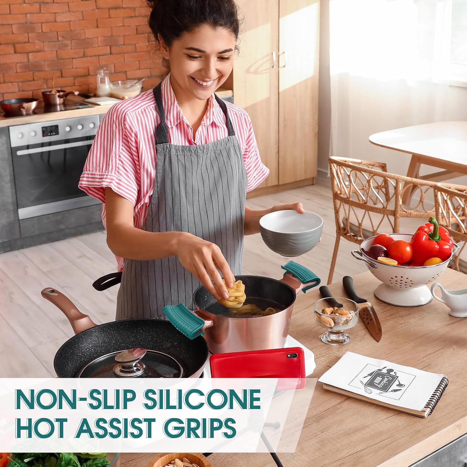 - High Heat Resistance: handle cover made of quality silicone, resistant to high temperatures of 475°F/ 250°C, suitable for high temperature cooking scenarios such as ovens, microwave ovens, air fryers, etc., safe and does not release harmful substances
