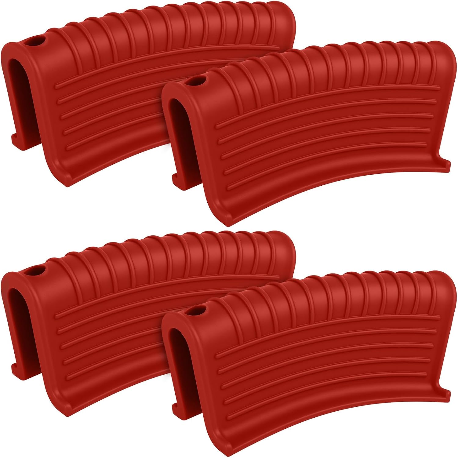 Patelai 4 Pcs Silicone Assist Hot Pan Handle Holder Pot Handle Covers for Cast Iron Skillets Holder Sleeve Nonslip Heat Resistant Pan Cover for Enameled Griddles Casserole Frying Cookware(Red)