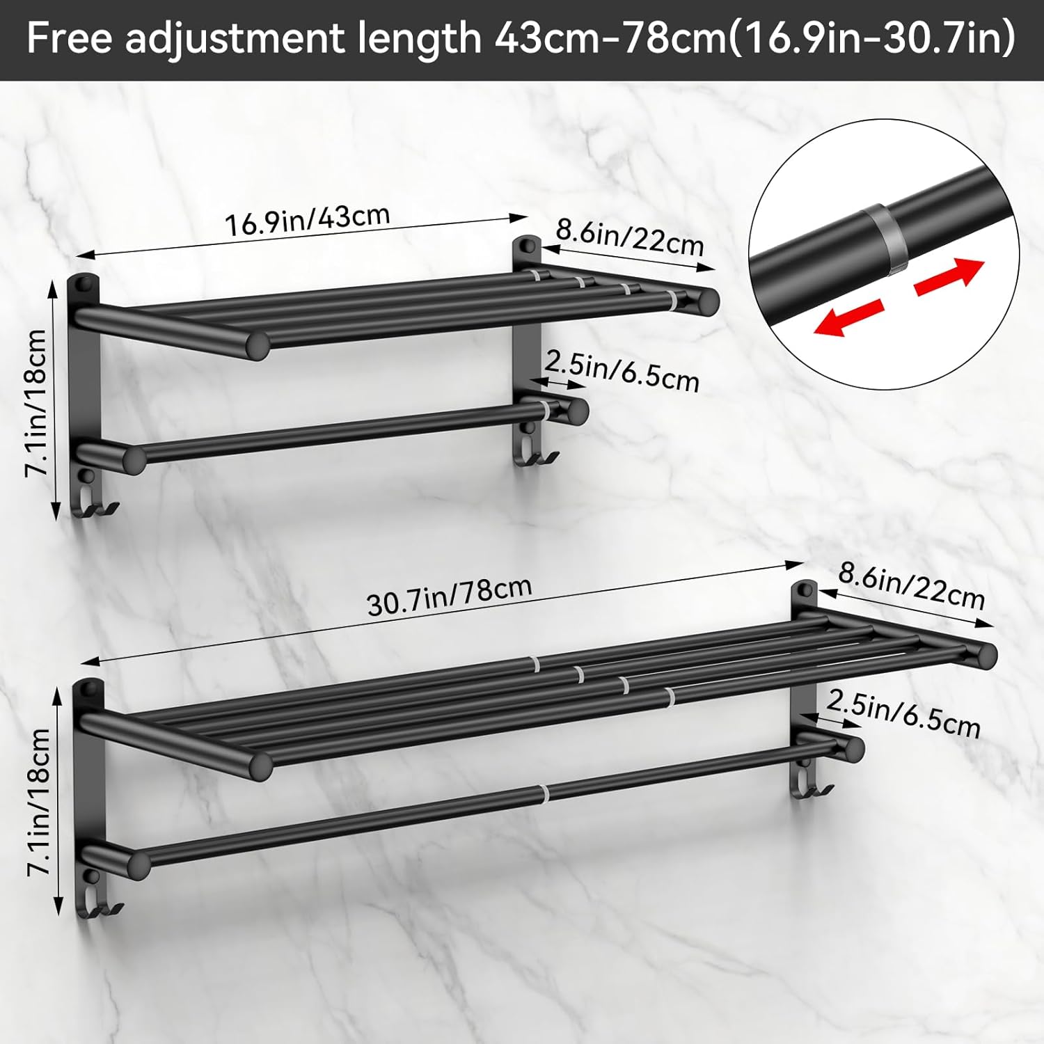 - 【 Scalable Design 】: The towel rack can be freely adjusted in length from 17 inches to 30.7 inches【43-78CM】, which can be adjusted as needed in limited space to improve space utilization.