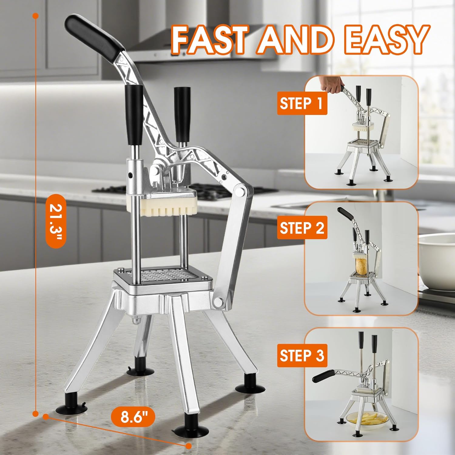 Commercial Vegetable Chopper Potato Dicer & Fruit Slicer, Stainless Steel French Fry Cutter with 3 Replacement Blades(1/2 Inch, 3/8 Inch and 1/4 Inch Blades) for Restaurants & Home Kitchen