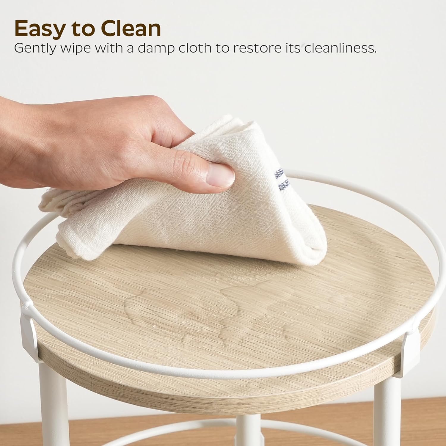 Lazy Susan Organizer, Rotating Spice Rack, 2 Tier Spice Turntable Organizer, Industrial Turntable Spice Holder, for Kitchen Countertop, Compact and Versatile, White and Light Oak SR22WG