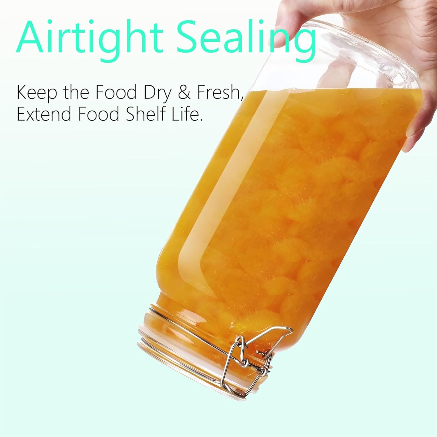 - 2.Airtight Seal Lids โ Glass jars with airtight lid is made of food-graded glass; Each kitchen canisters for countertop is well sealed, equipped with silicone gasket and a stainless iron locking clamp to make sure your food stay clean and fresh in storage