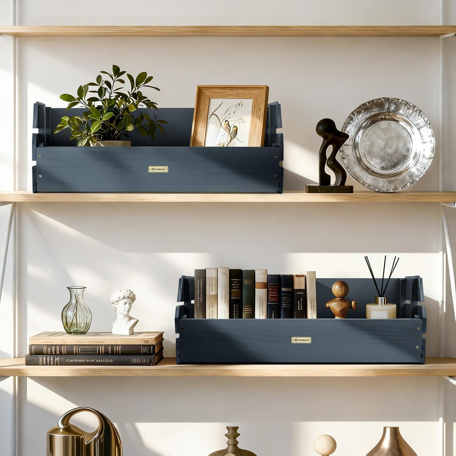 - Space-Saving: Maximize storage in tight spaces with these wooden basket. Hidden handles make them easy to move when needed
