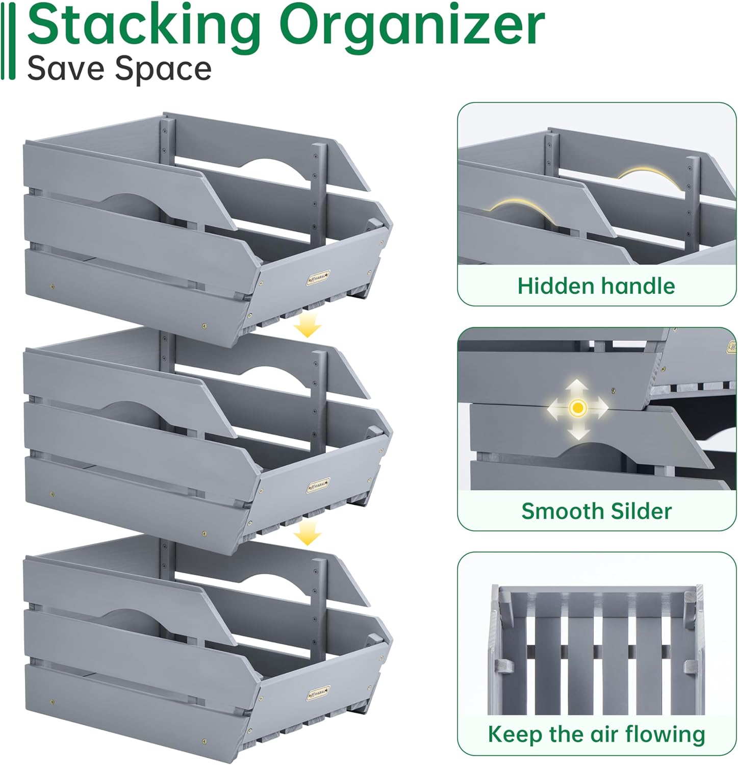 - Space-Saving: Maximize storage in tight spaces with these wooden basket. Hidden handles make them easy to move when needed