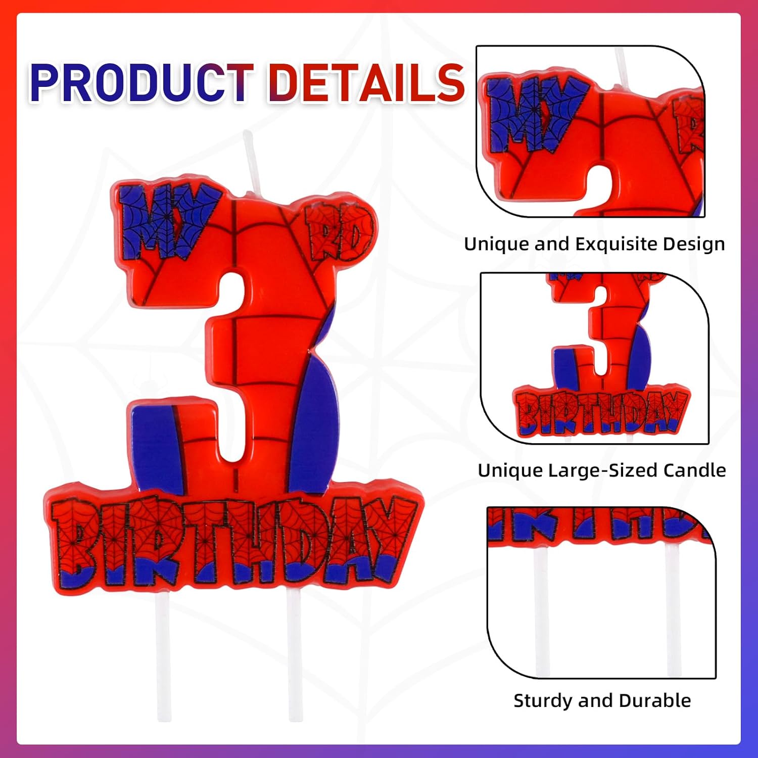 Spider Birthday Party Decorations, Number 3 Red Spider Web Happy Birthday Cake Candle for Boys Girls Spider Web 3rd Birthday Party Supplies (Spider Web 3rd Candle)
