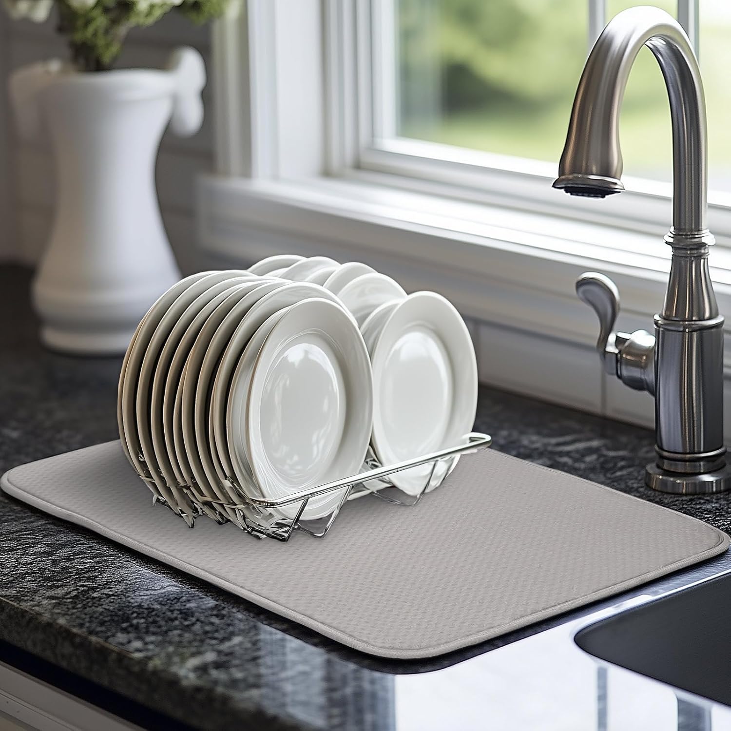 Light Gray Dish Drying Mats 17” x 24” – XXL Kitchen Drying Mat for Counter, Super Absorbent Microfiber Dish Rack Mat, Foldable Drying Pad for Dishes, Pots, Pans – Dish Drainer Mat