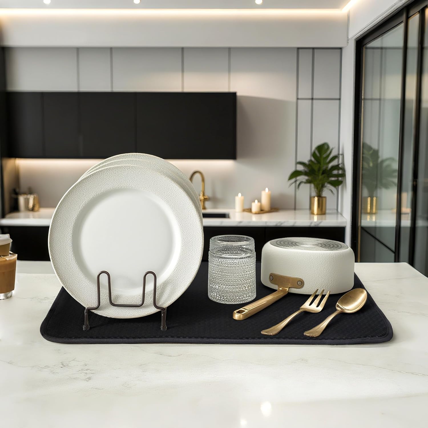- 2-Pack Black Dish Mats – Modern & Practical: This set includes two 20" x 15" dish drying mats in classic black—stylish, stain-resistant, and great for any modern kitchen decor
