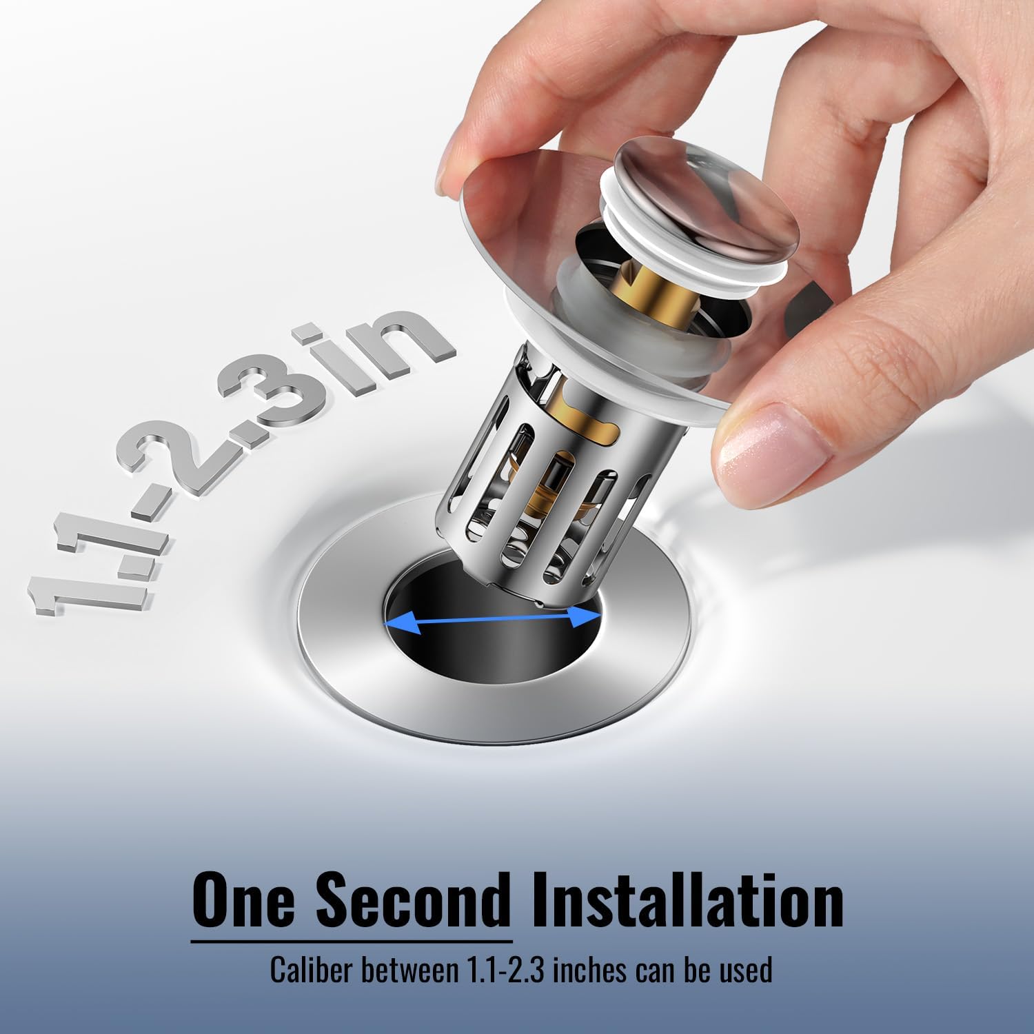 - [โ Universal Fit Guarantee] JOMSTHOME 2Pcs sink drain stopper is engineered to fit virtually any bathroom sink drain. With its innovative adjustable sealing system, it seamlessly fits drain holes from 1.1" to 2.36" (28mm to 60mm), covering 99.9% of standard bathroom basins. No more measuring hassles or returns โ this is the last sink drain stopper you'll ever need to buy.