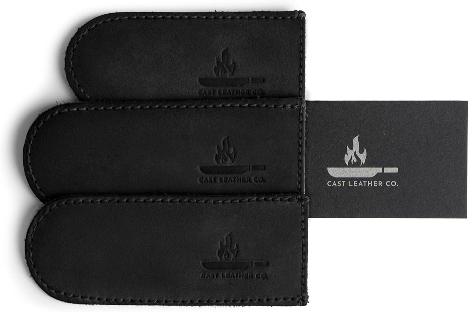 Leather Skillet Handle Cover for Cast Iron Skillets, Heat Resistant Pan Handle Covers (Charcoal Black)