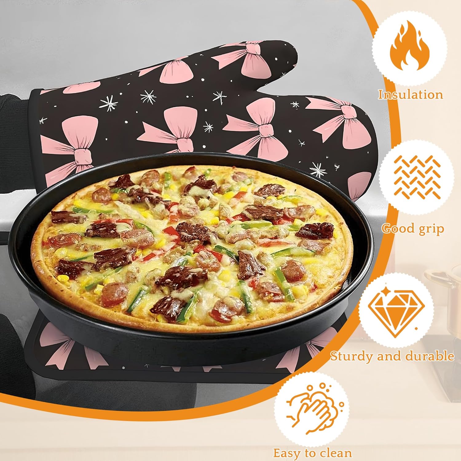 - 4-Piece Set: Includes 2 oven mitts and 2 heat-resistant pads, providing a practical and complete combination for your daily kitchen needs. Ideal for cooking, baking, grilling, and handling hot dishes.