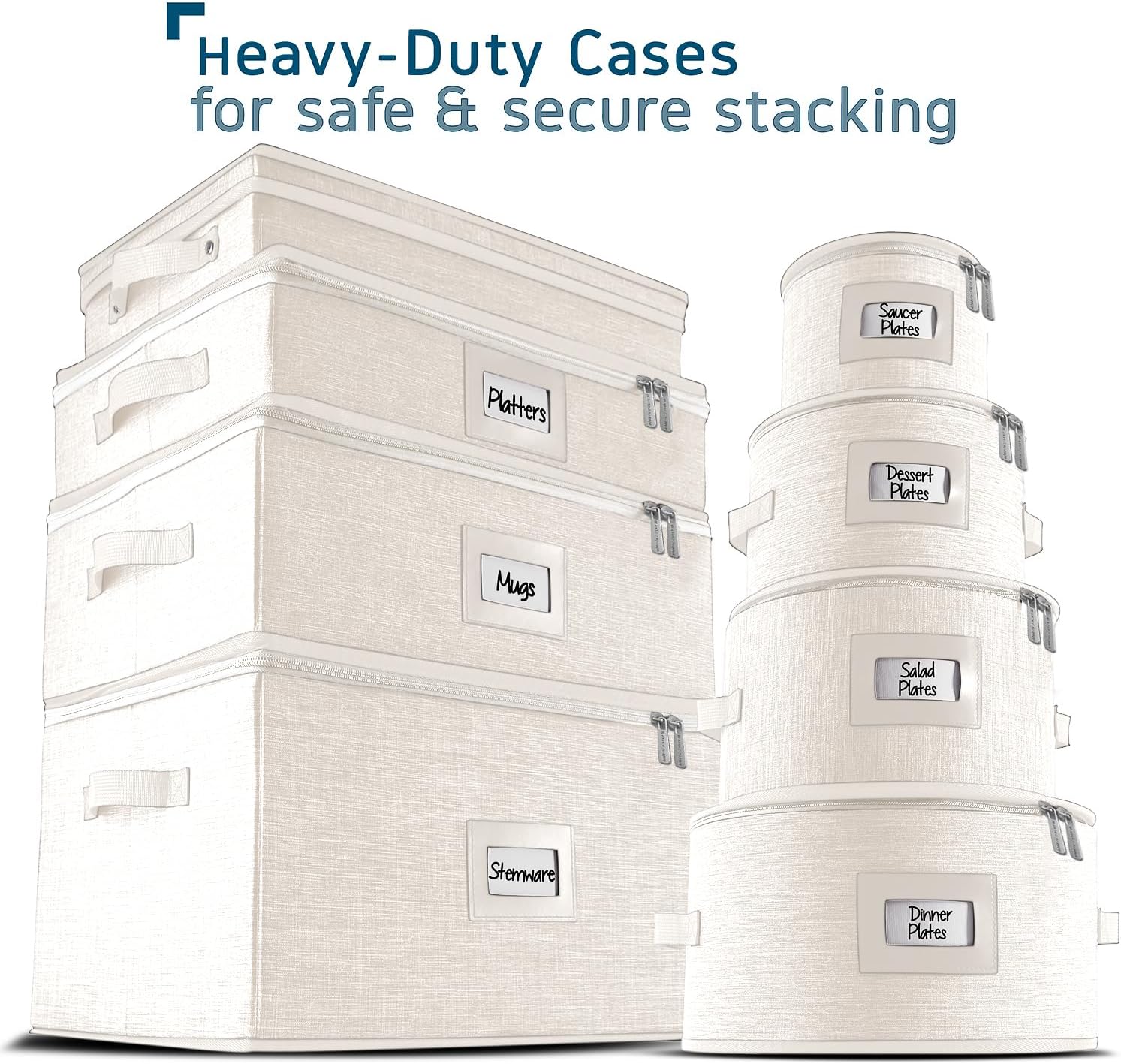 Hearth & Harbor Coffee Mug Storage, Quilted and Stackable Coffee Cup Storage Organizer for Service of 12, Mug Storage Box with Dividers, China Containers Hard Shell for Moving and Organization, Cream