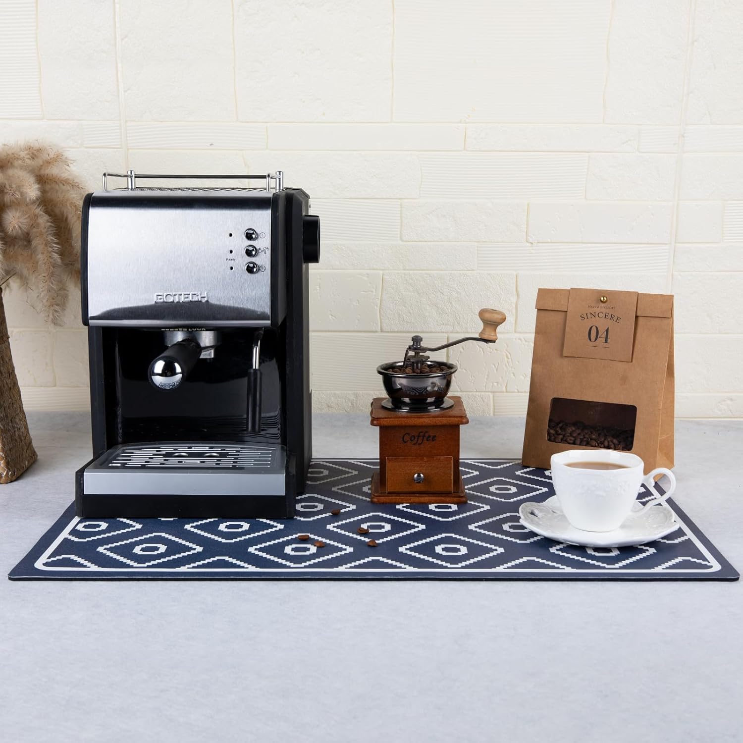 - Noise-dampening & Heat-resistant - Our coffee bar mat is 1/6" thick, which can effectively cushion coffee machine noise and reduce clinking sounds as cups touch the tabletop, ensuring you a tranquil and pleasant coffee experience. Additionally, it provides ample protection for your countertop, effectively shielding it from the heat of boiling water.
